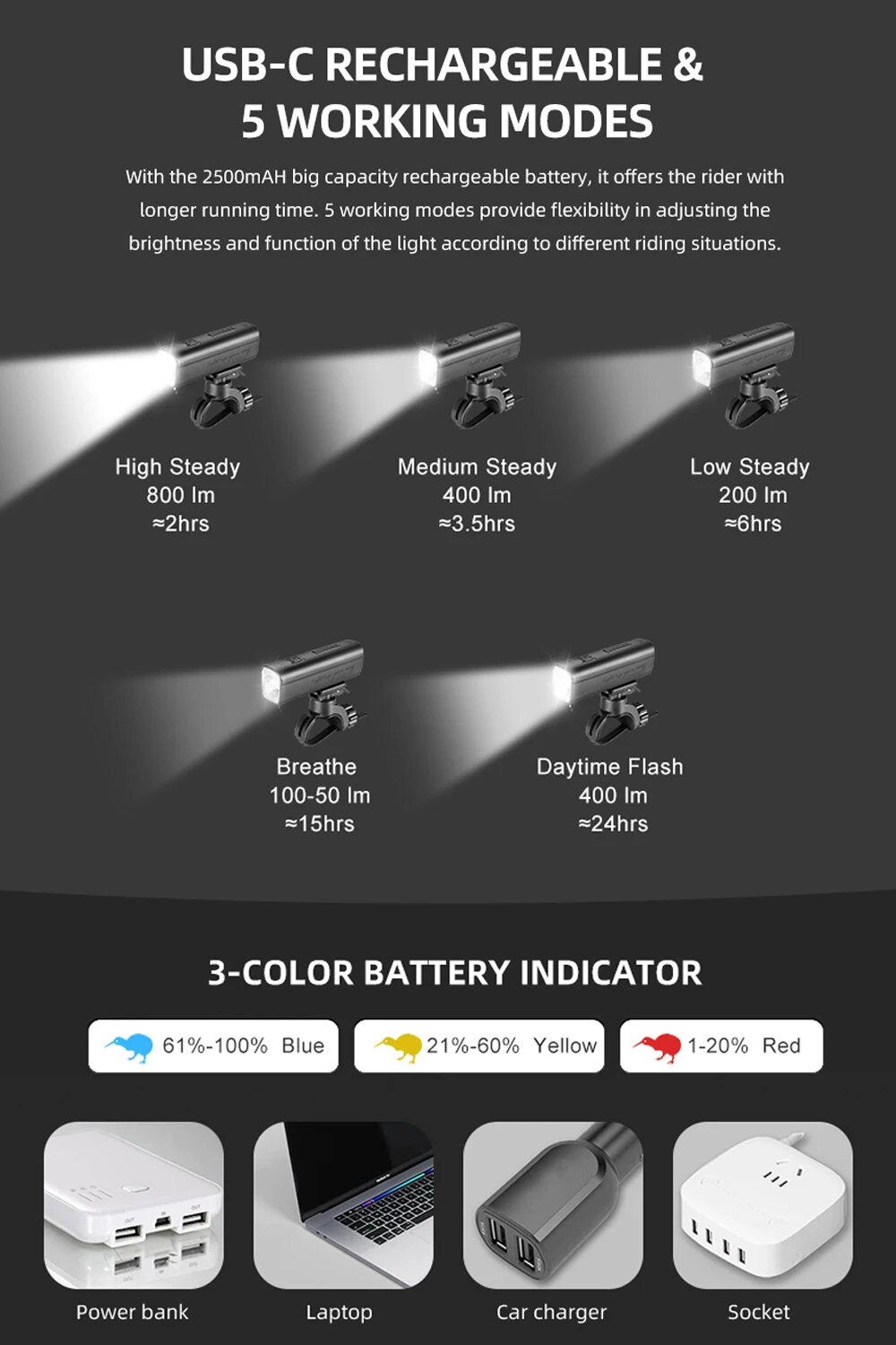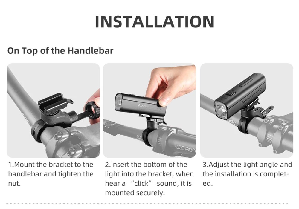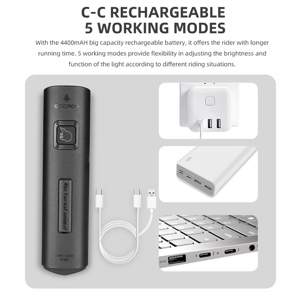 Фара велосипедная GACIRON с велофонарем KIWI, 400 люмен, 5 режимов, USB-зарядка