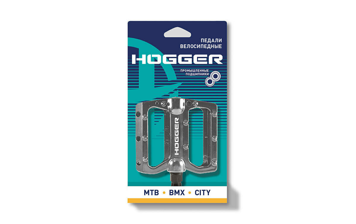 Педали для велосипеда HOGGER PLATFORM алюминиевые, 110x105мм, резьба 9/16", со сменными шипами, промподшипник, серые