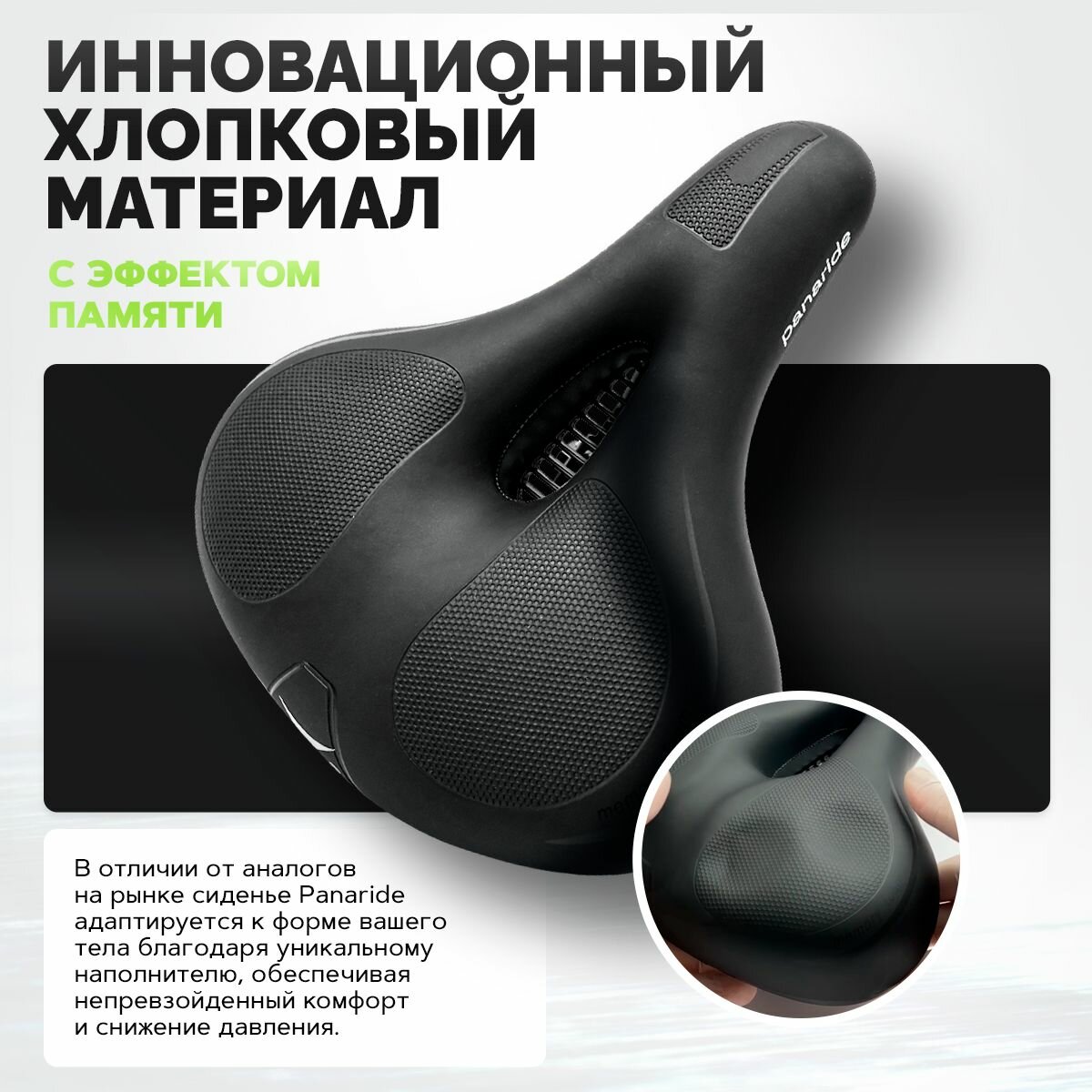 Мягкая сидушка на велосипед, велосипедное сиденье широкое комфортное удобное с эффектом памяти, на пружинах интересное: