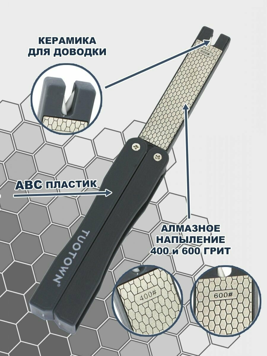 Карманная точилка для заточки ножей, алмазная Tuotown, двусторонняя 400 / 600 грит интересное: