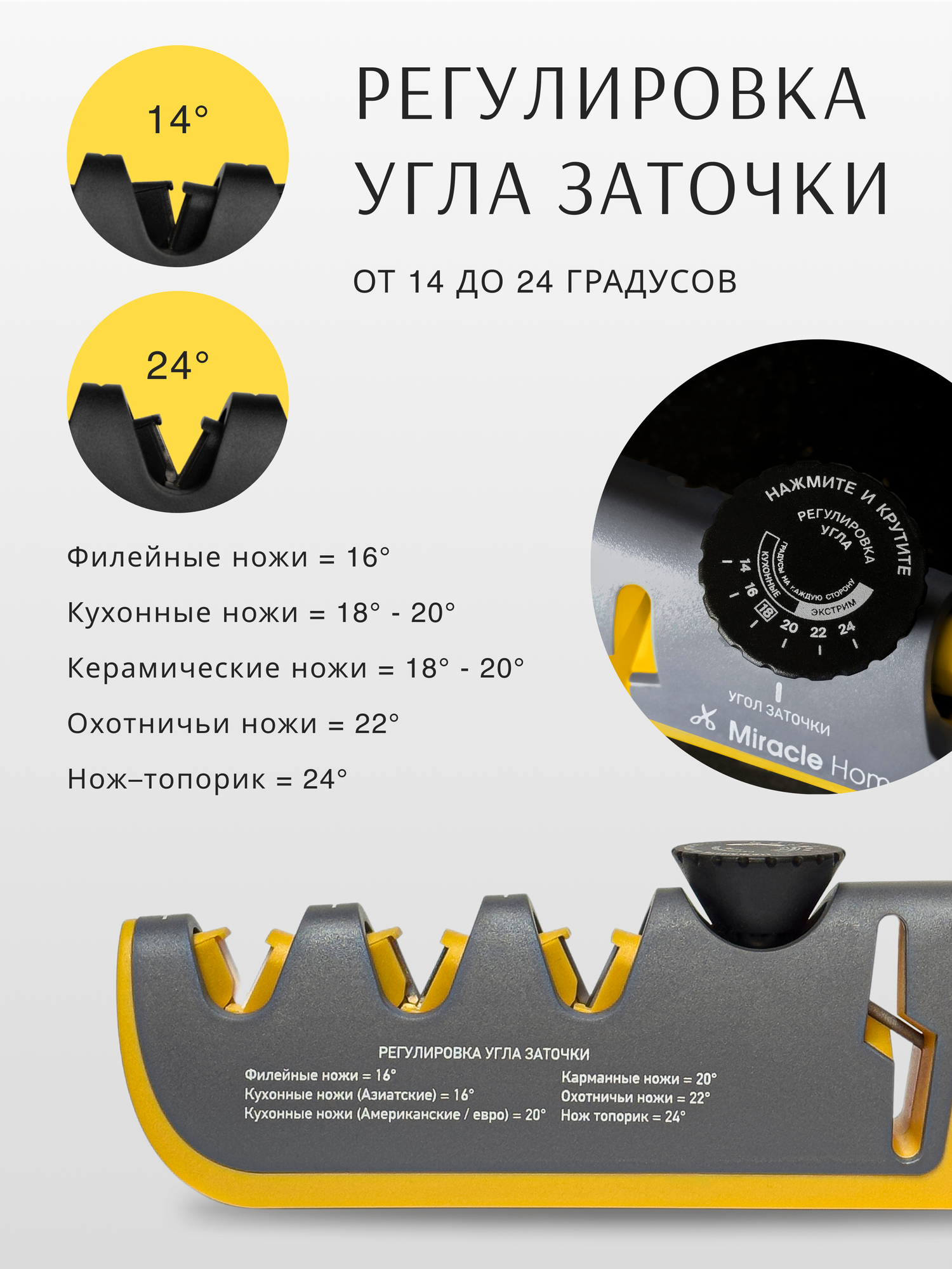 | Угол заточки | регулируемый |