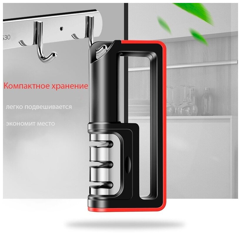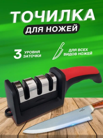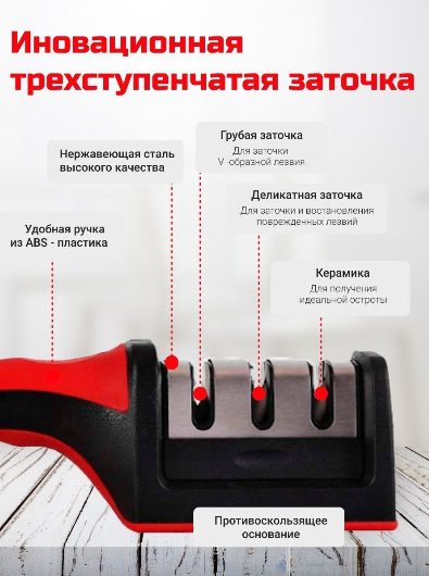 Ножеточка с 3-х этапной системой заточки / Точилка для ножей, цвет черно-красный интересное: