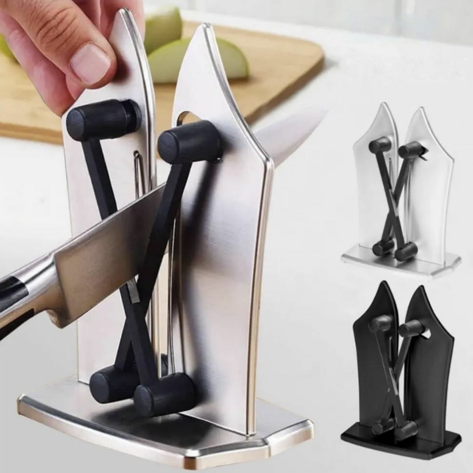 Купить Точилка для ножей острая грань, механическая, универсальная точилка для ножей и ножниц, с регулируемым углом заточки и полировки.