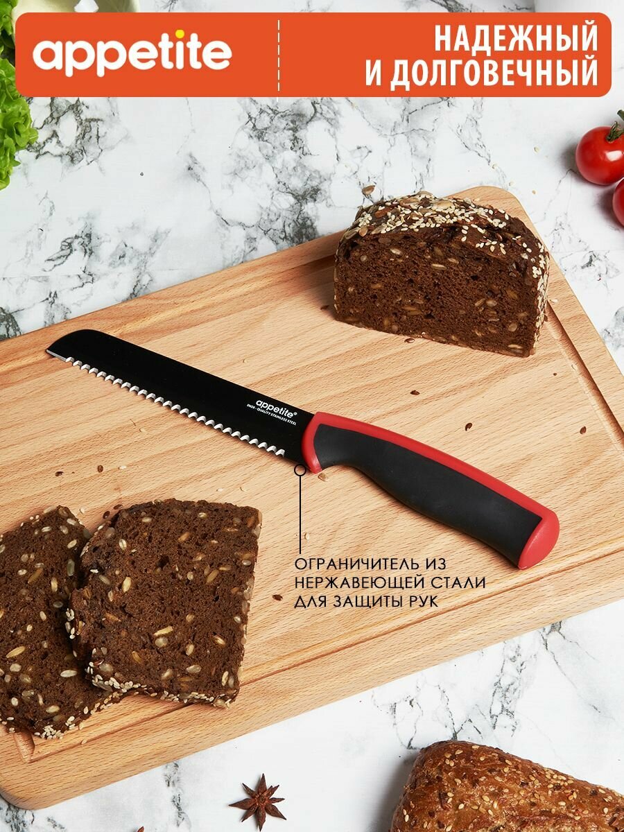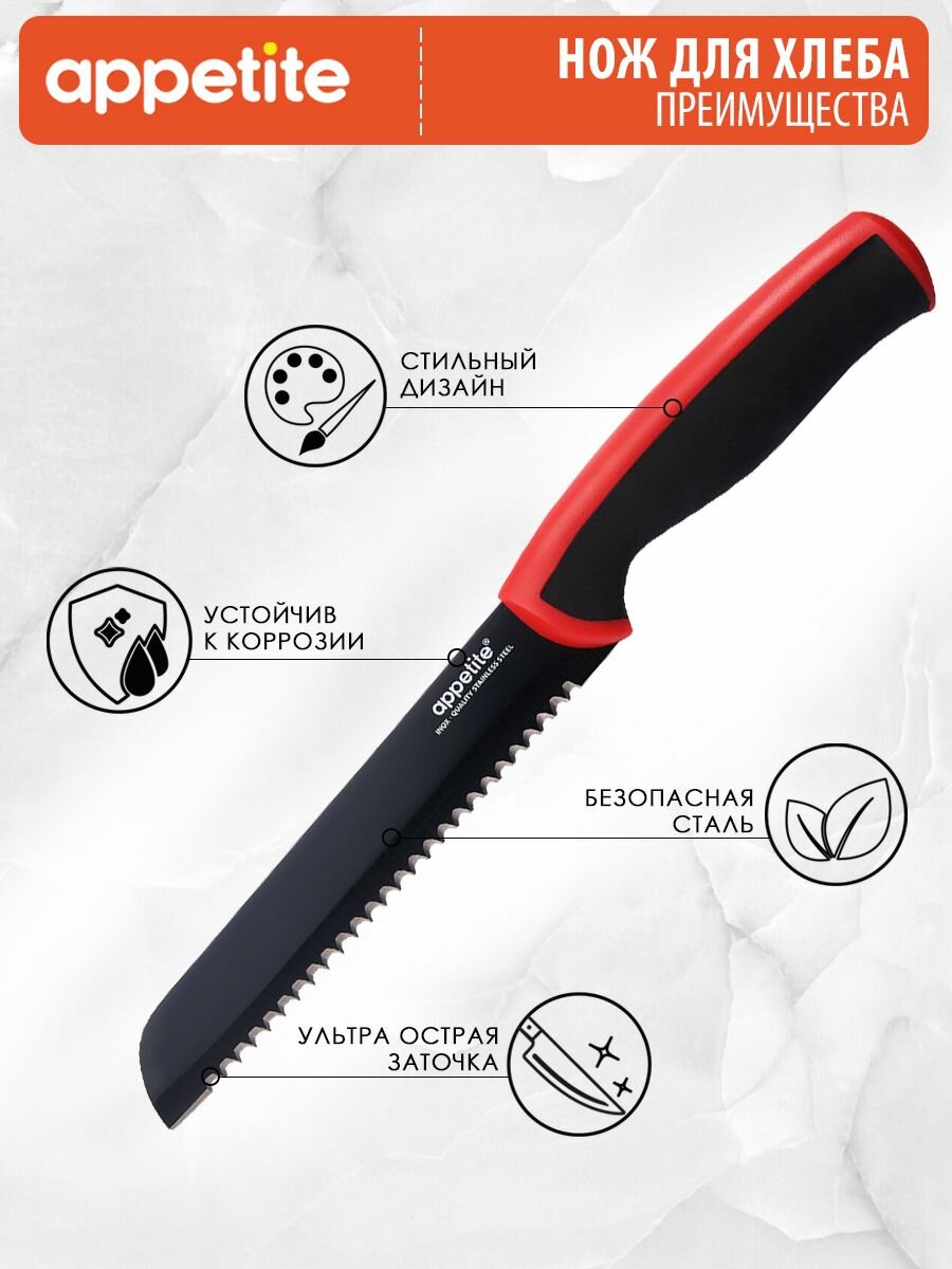 Нож из нержавеющей стали Эффект для хлеба 15см красный ТМ Appetite интересное: