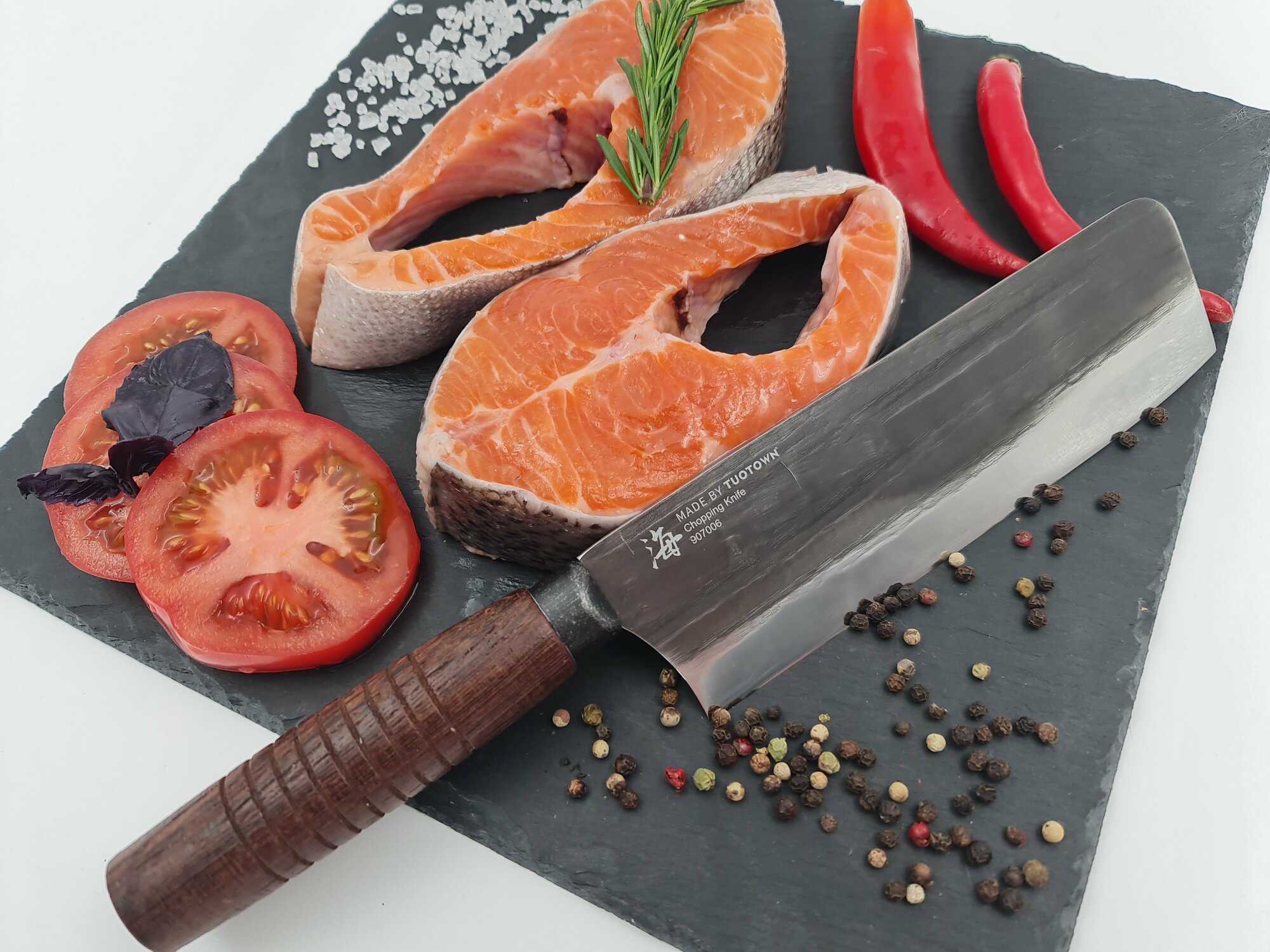 Китайский шеф-нож Цай Дао (Cai Dao) 19 см — кливер для шинковки и нарезки. TUOTOWN. Кованая углеродка/венге.