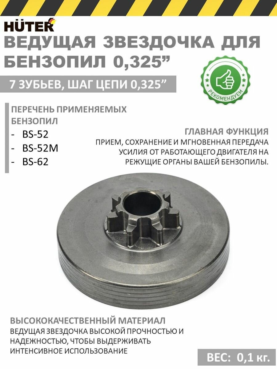 Ведущая звездочка Huter, для бензопил, для BS-52-62, двухтактный двигатель