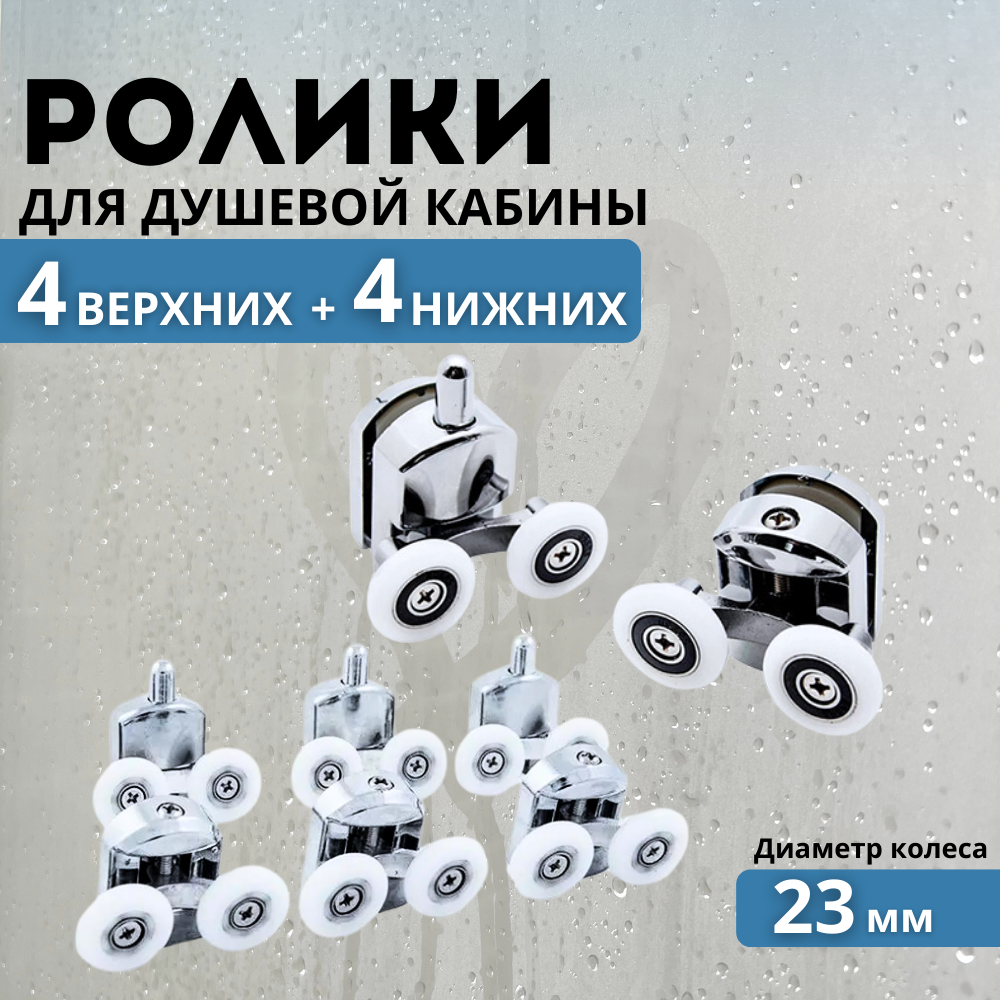 Ролики для душевой кабины 23 мм 8 шт двойные /колесики для дверей интересное:
