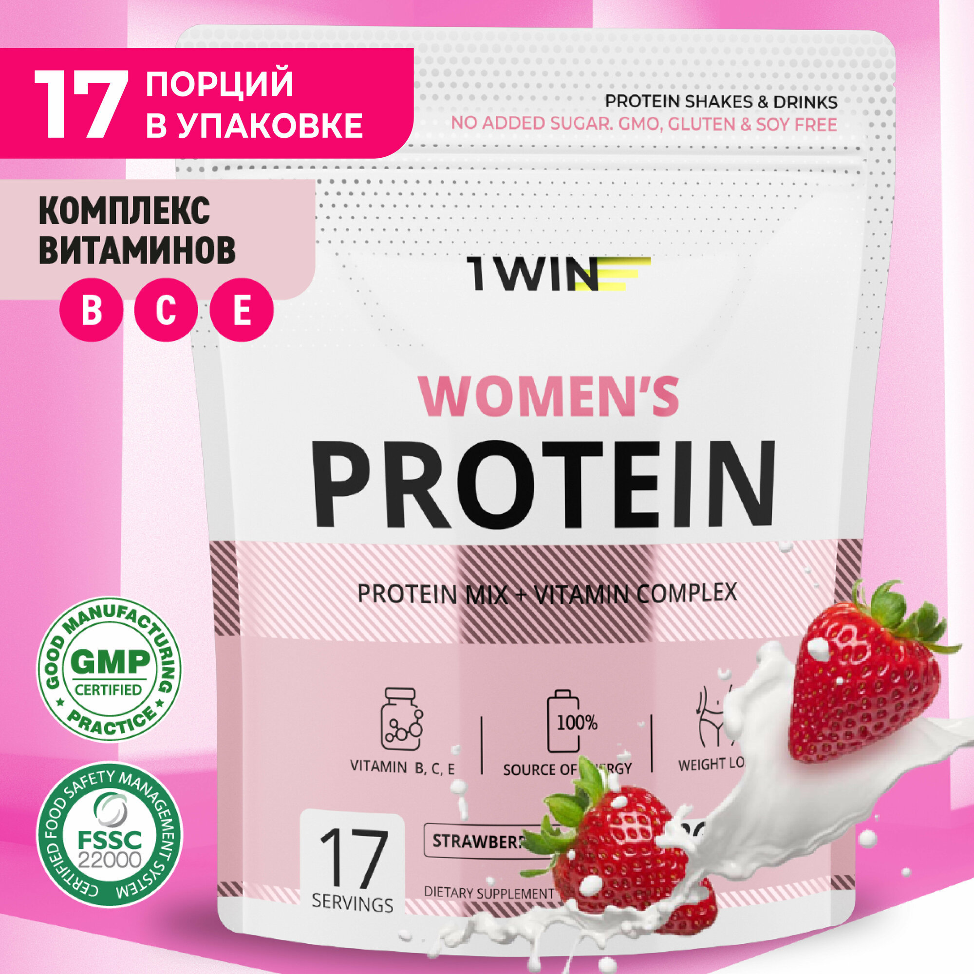 Купить Протеин сывороточный женский 1WIN, protein порошок с витаминами, для красоты и спорта, вкус Клубничное суфле, 17 порций, 425 г
