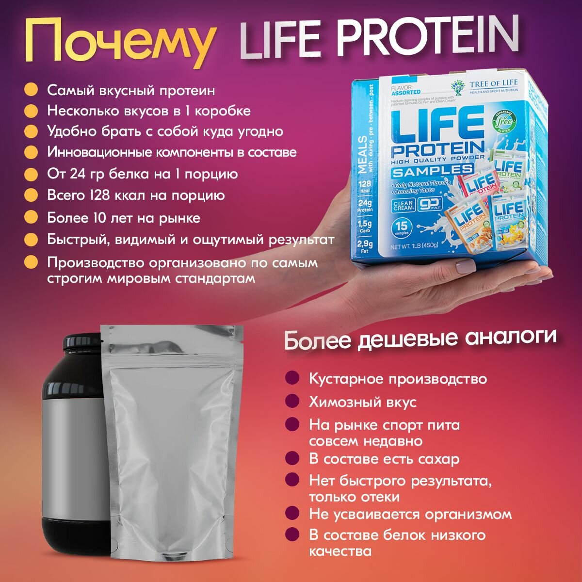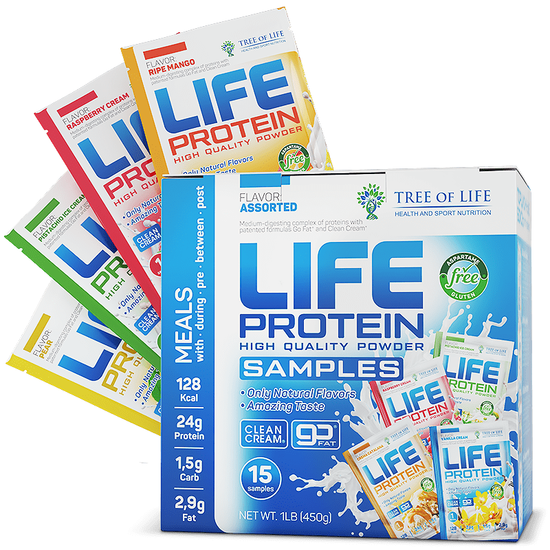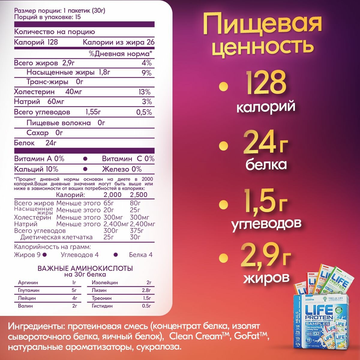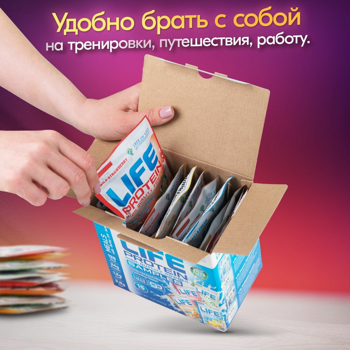 Купить Протеин сывороточный изолят для набора массы Tree of Life Protein Samples. Порционный белковый коктейль без сахара,15 саше- порций