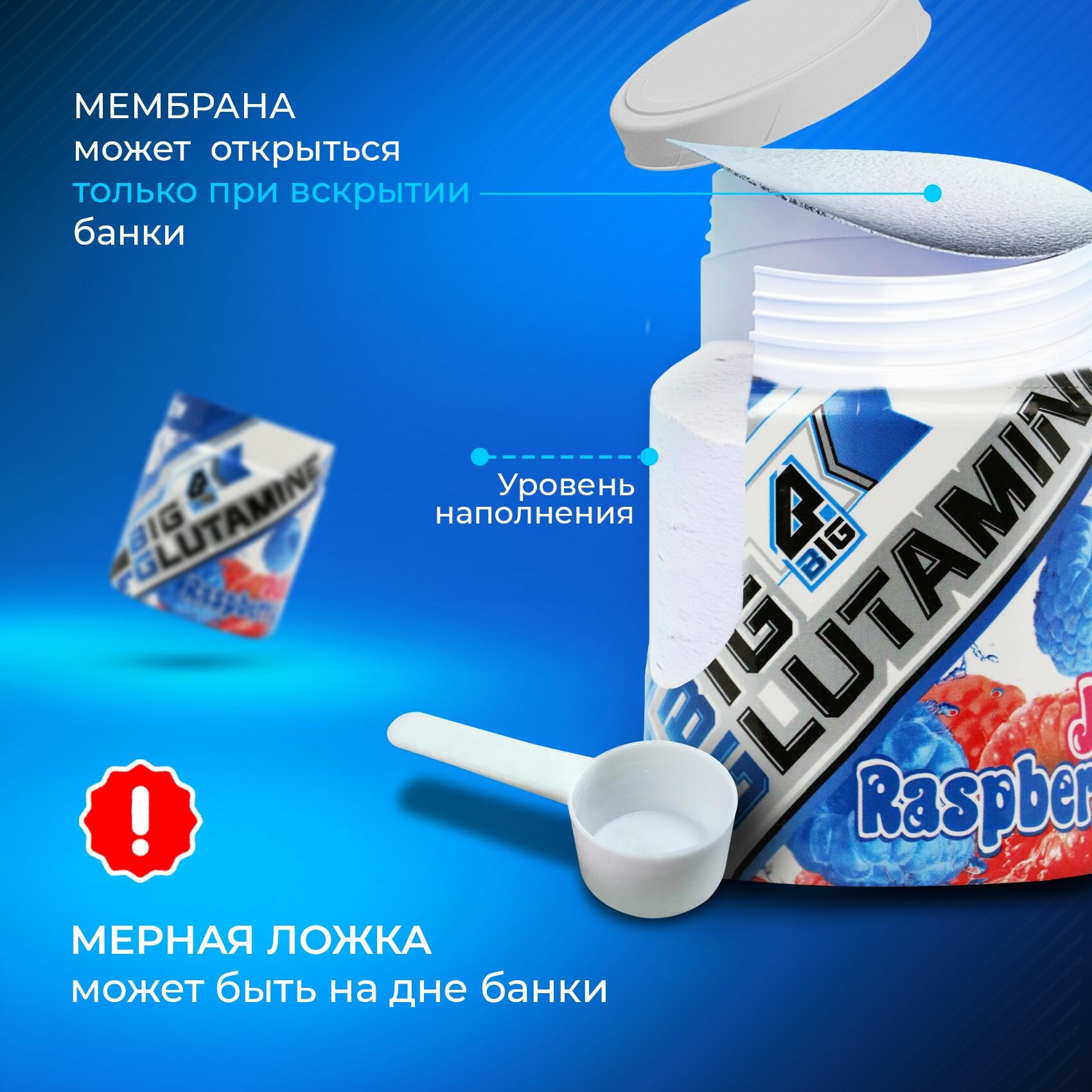Глютамин BIGSNT / аминокислота для роста мышц и укрепления иммунитета / порошок, 200 г (40 порций), вкус Малина