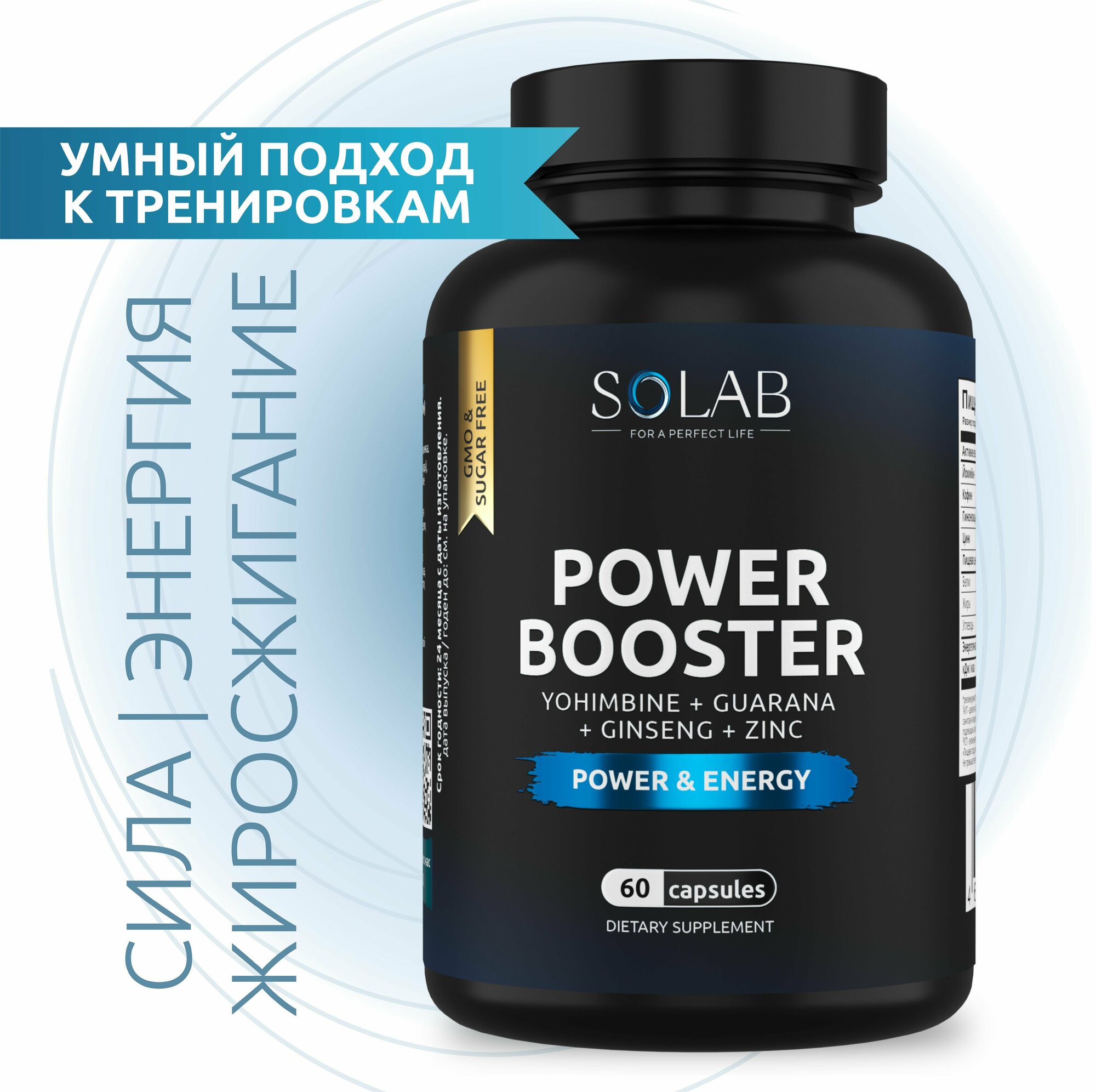 Купить Тестостероновый бустер SOLAB POWER Booster энергетик для мужчин с йохимбе, гуарана, женьшень и цинк, 60 капсул