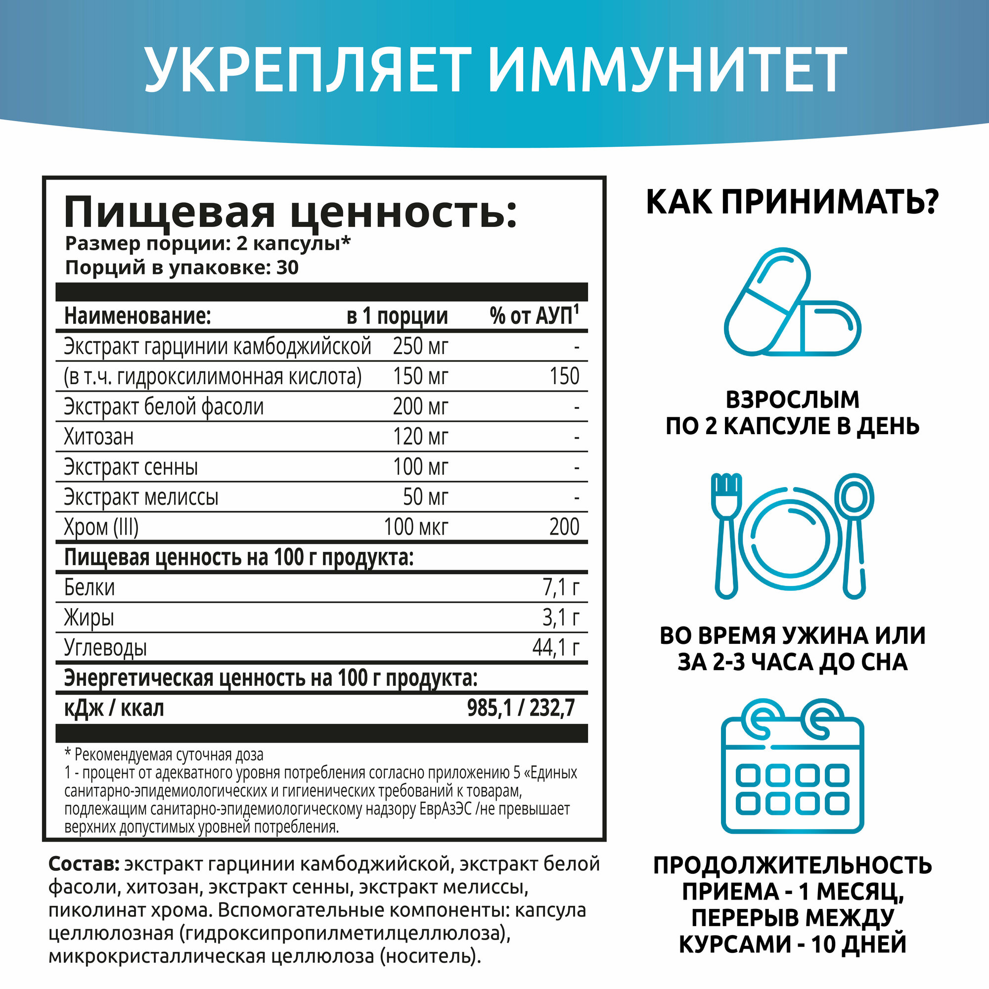 | Дополнительная информация | Fat burner day: сафлоровое масло, оболочка (желатин - загуститель, вода, глицерин - загуститель). Fat burner night: Экстракт гарцинии камбоджийской, экстракт белой фасоли, хитозан, эктсракст сенны, экстракт мелиссы, пиколинат хрома. Вспомогательные компоненты: капсула целлюлозная (гидроксипропилметилцеллюлоза), микрокристаллическая целлюлоза (носитель). L-карнитин: L-карнитина тартрат, капсула желатиновая (желатин-загуститель, вода, диоксид титана - краситель), целлюлоза микрокристаллическая - носитель. Витамин С: Аскорбиновая кислота (витамин С), глюкоза, твердая желатиновая капсула ( желатин - загуститель, вода, диоксид титана - краситель). |