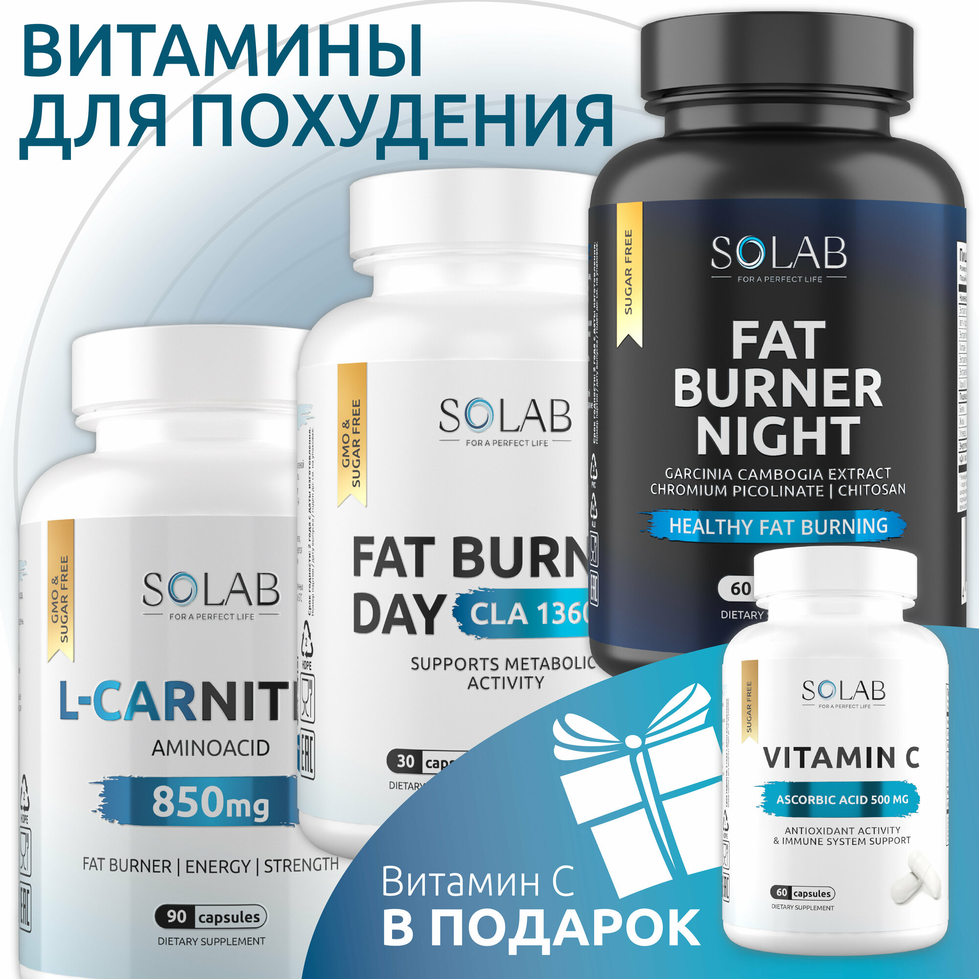 Купить SOLAB Набор жиросжигателей Fat Burner Day дневной на основе CLA и Fat Burner Night ночной + подарок