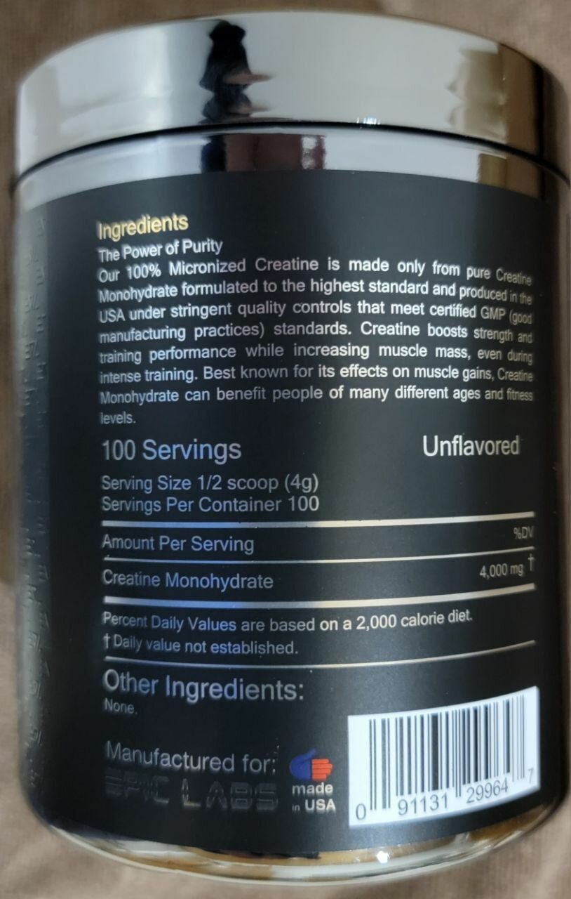 Креатин моногидрат микронизированный порошок Epic Labs Gold Series CREATINE monohydrate micronized 400 гр, спортивное питание для набора мышечной массы интересное: