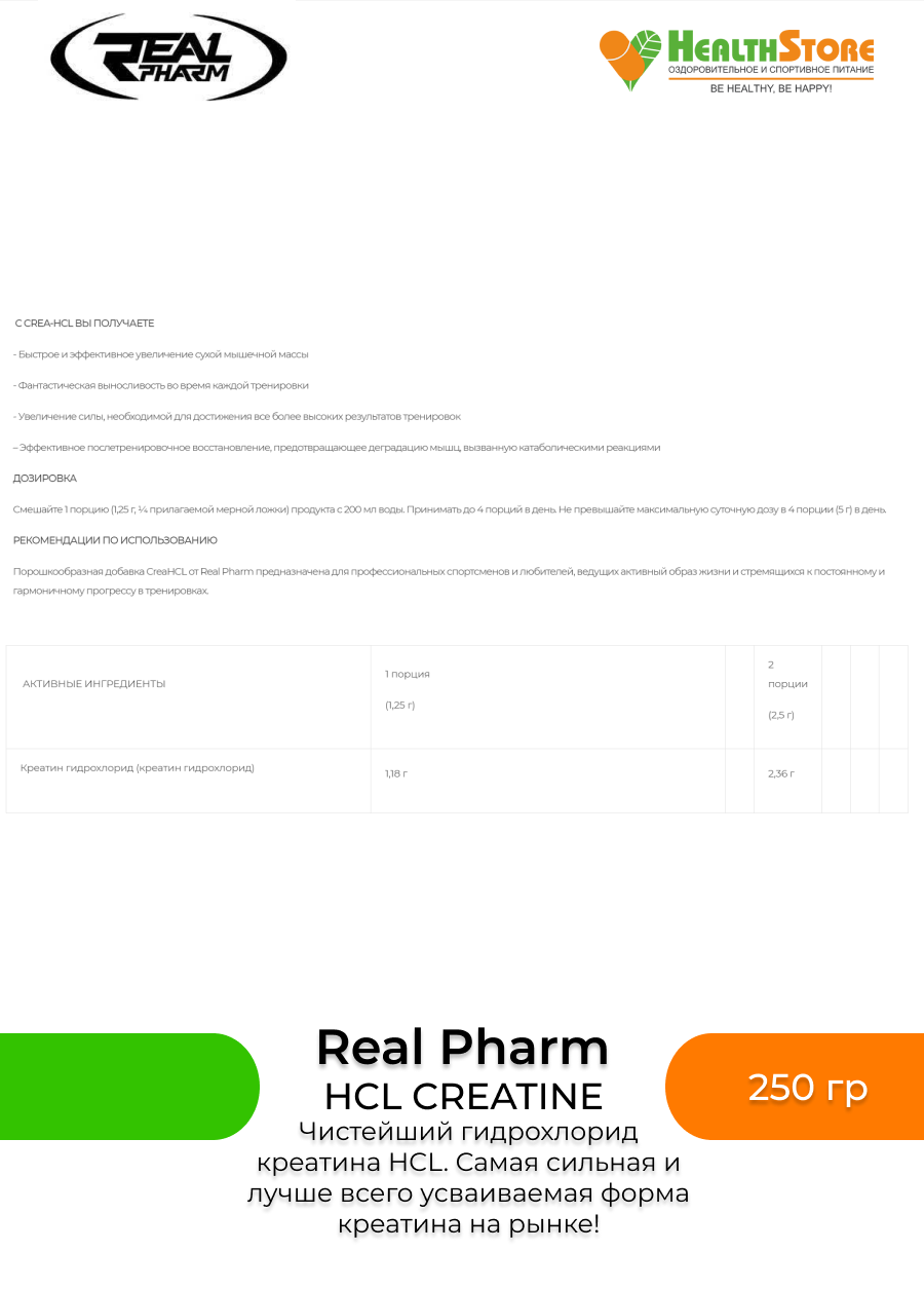 Real Pharm, Crea-HCL-250g (Вишня) интересное: