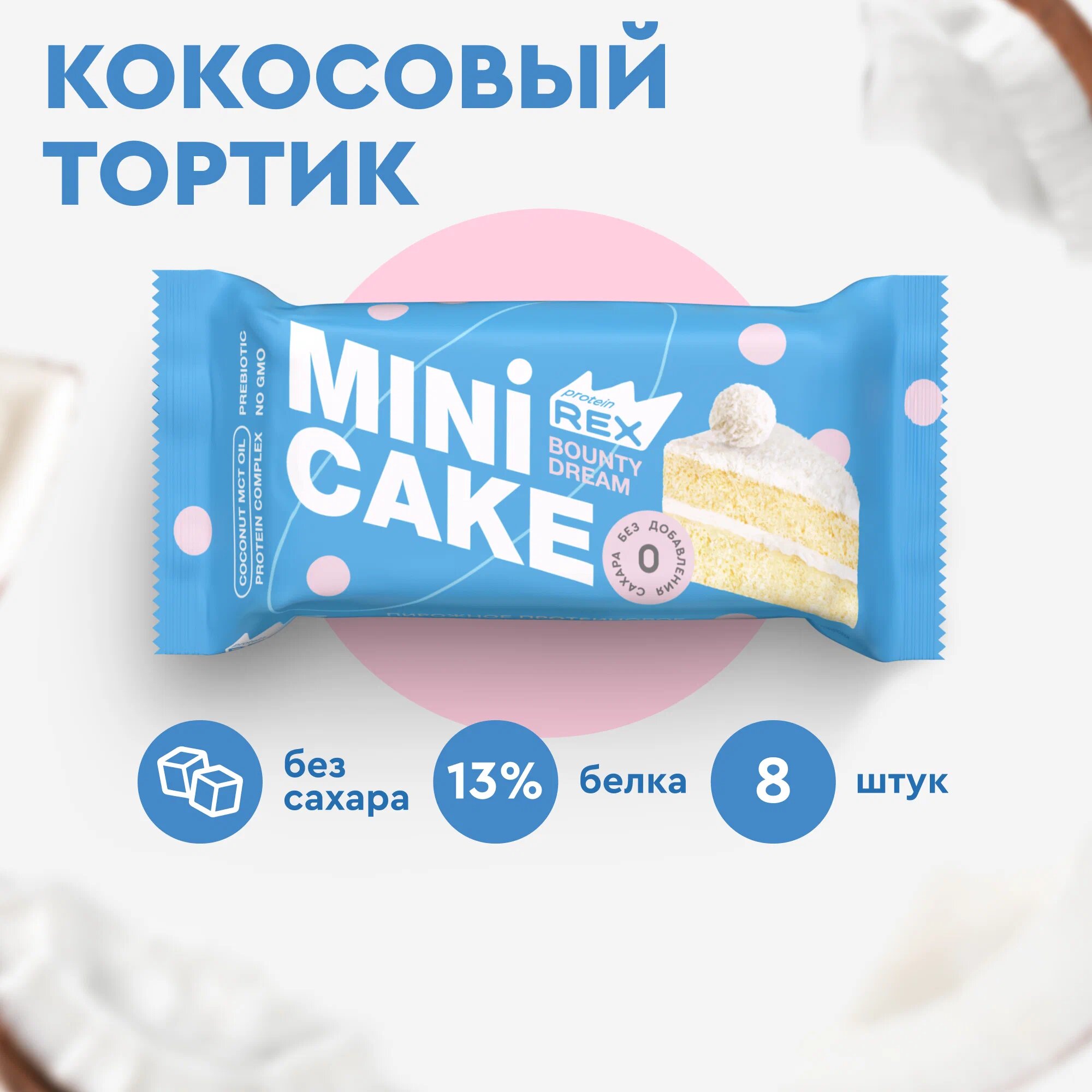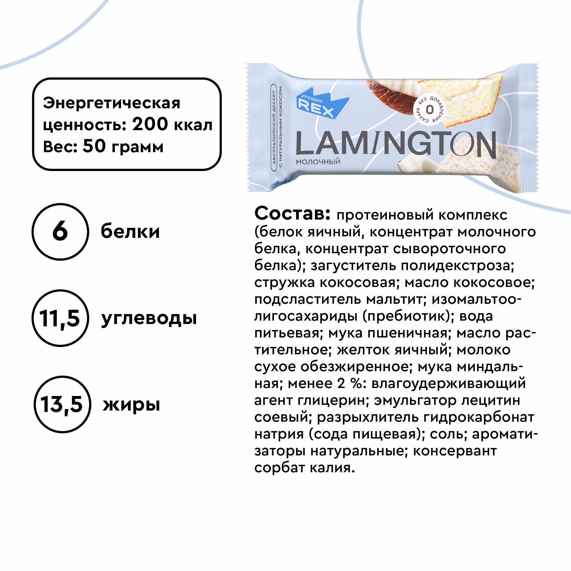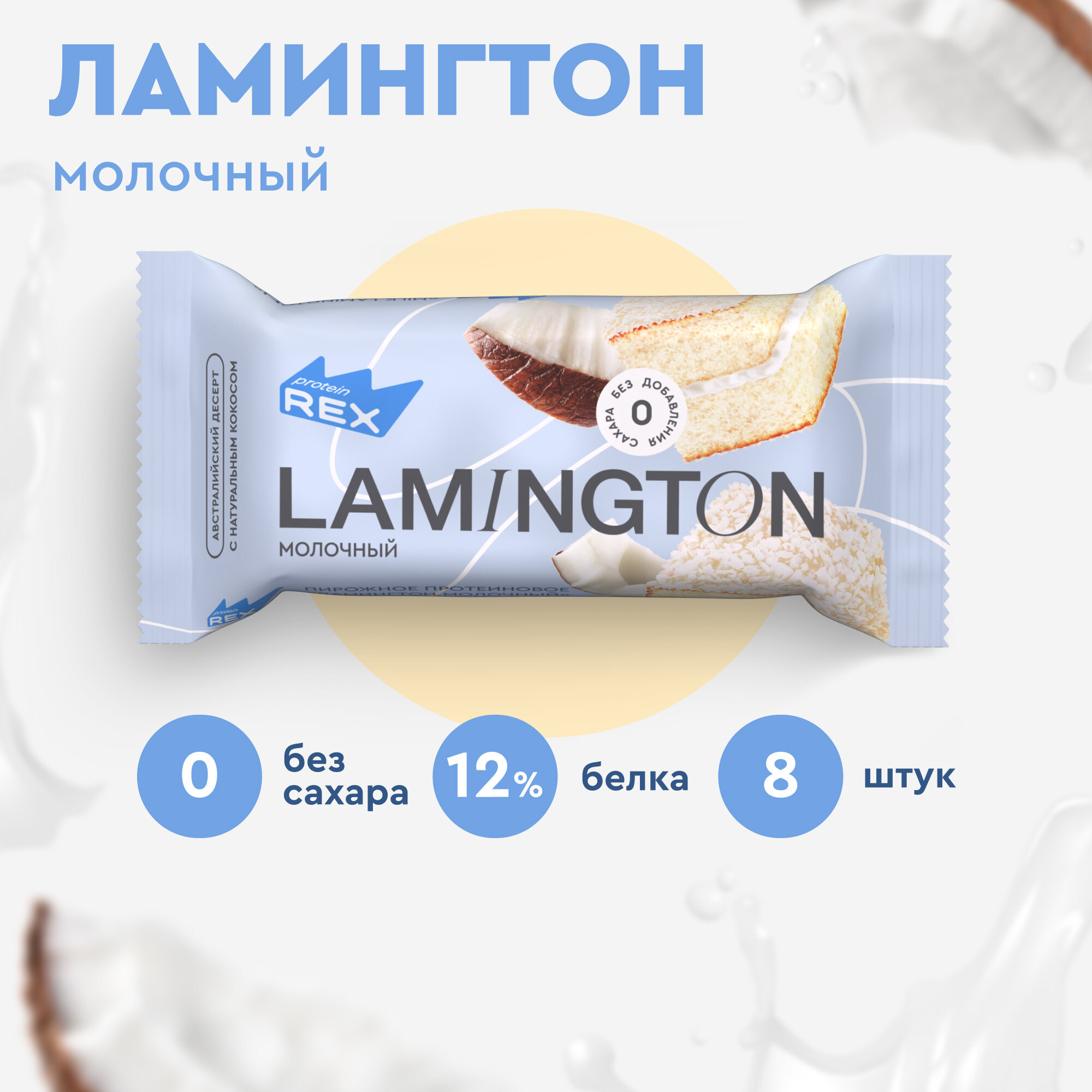 Купить Протеиновые пирожные без сахара ProteinRex Ламингтон Молочный 8 шт х 50 г, 190 ккал, спортивное питание