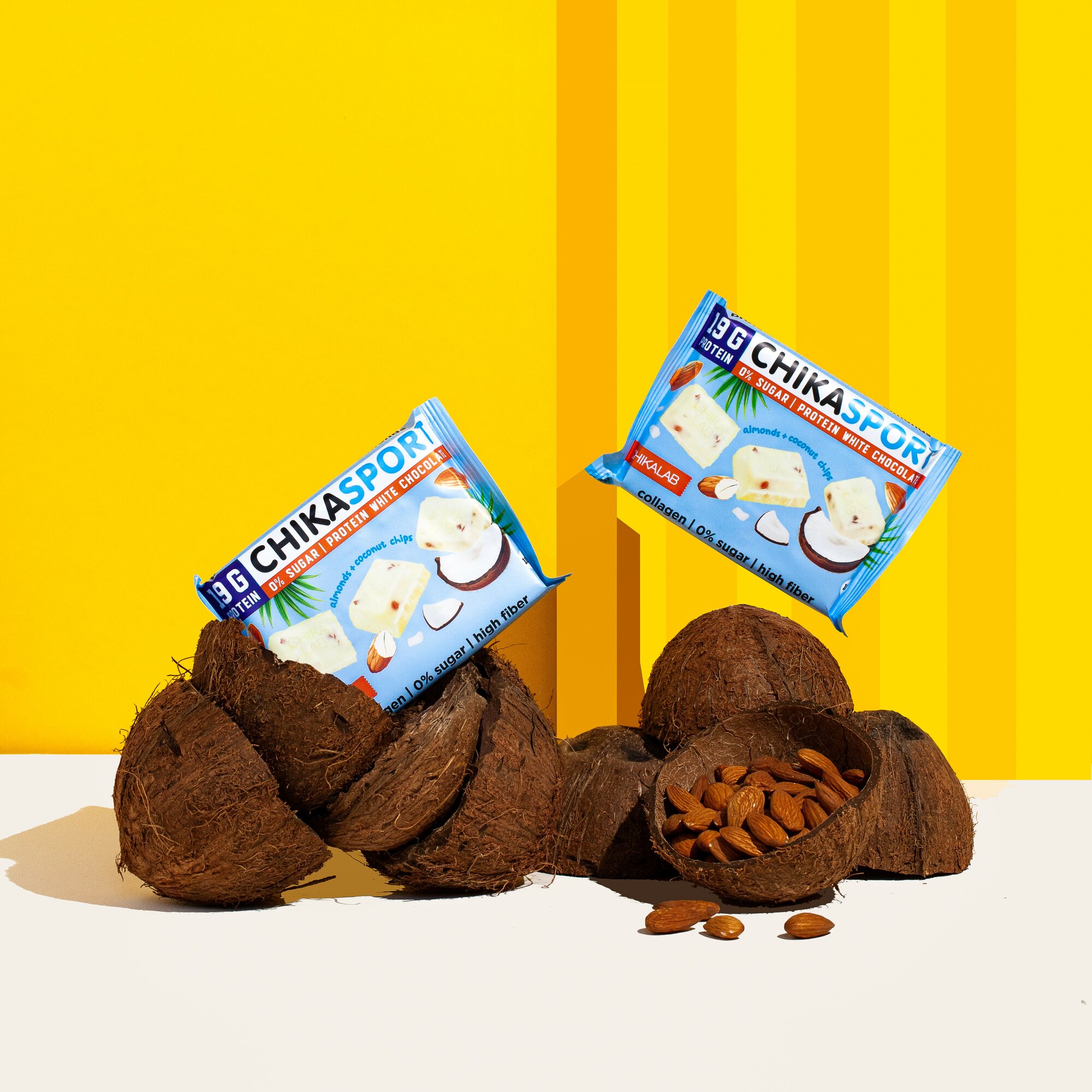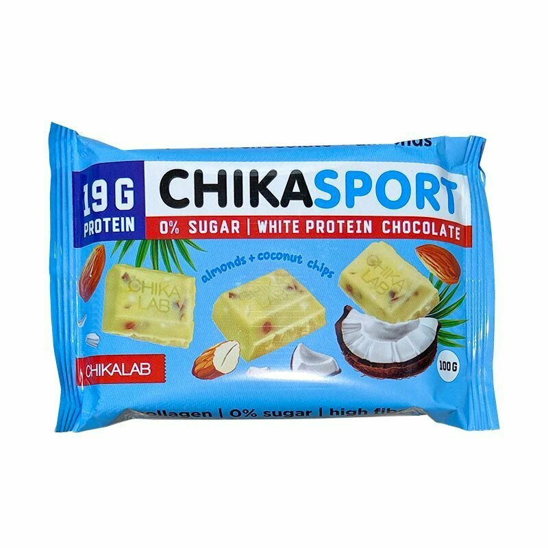 Купить CHIKALAB Протеиновый белый шоколад без сахара с миндалем и кокосовыми чипсами, 4шт х 100г
