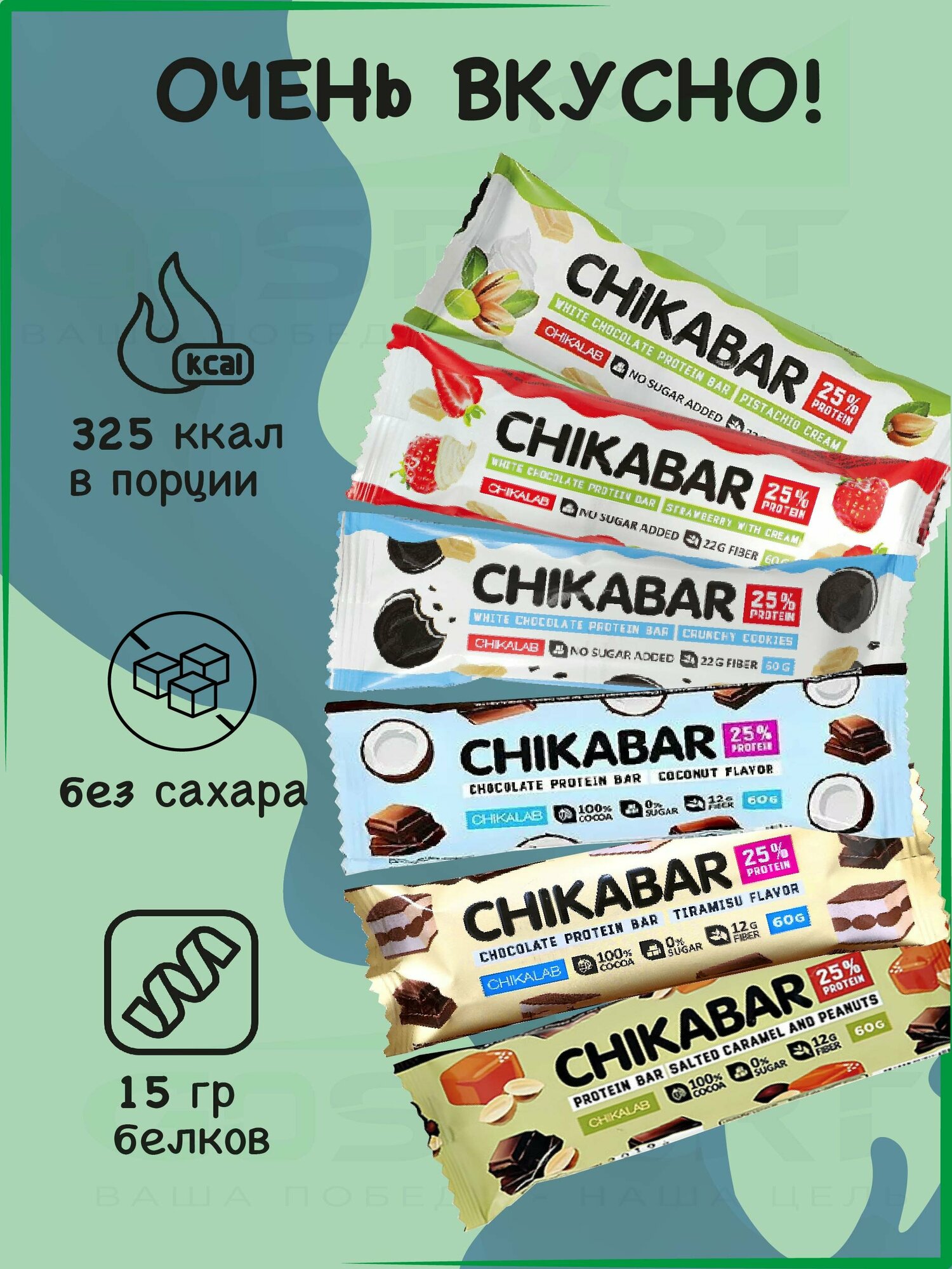 Протеиновый батончик Chikalab Chikabar mix, клубника, печенье с кремом, кокос, тирамису, арахис, фисташка интересное: