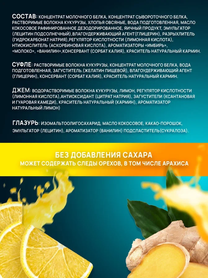 Купить Протеиновое печенье ё/батон с белковым суфле лимон-имбирь 4 шт по 50 г