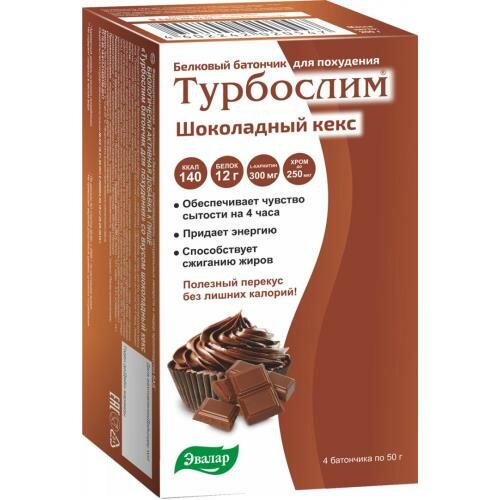 Купить Турбослим батончик для похудения со вкусом шоколадный кекс, 4 шт, Эвалар