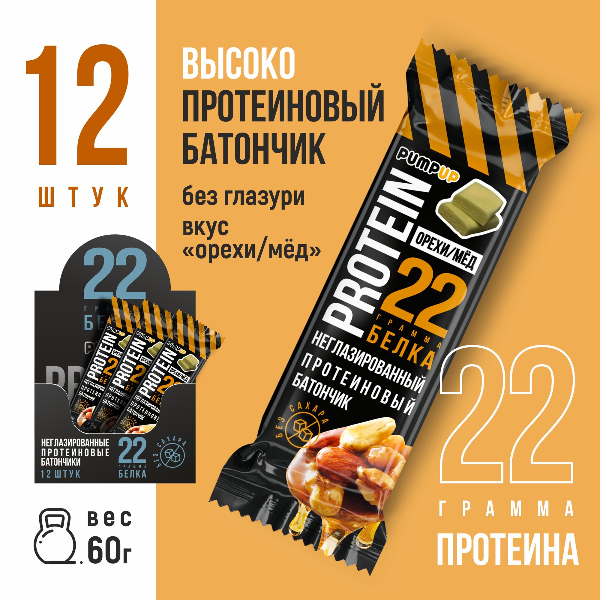Купить Протеиновые батончики без сахара Pump Up с орехами и медом 12 шт. по 60 гр.