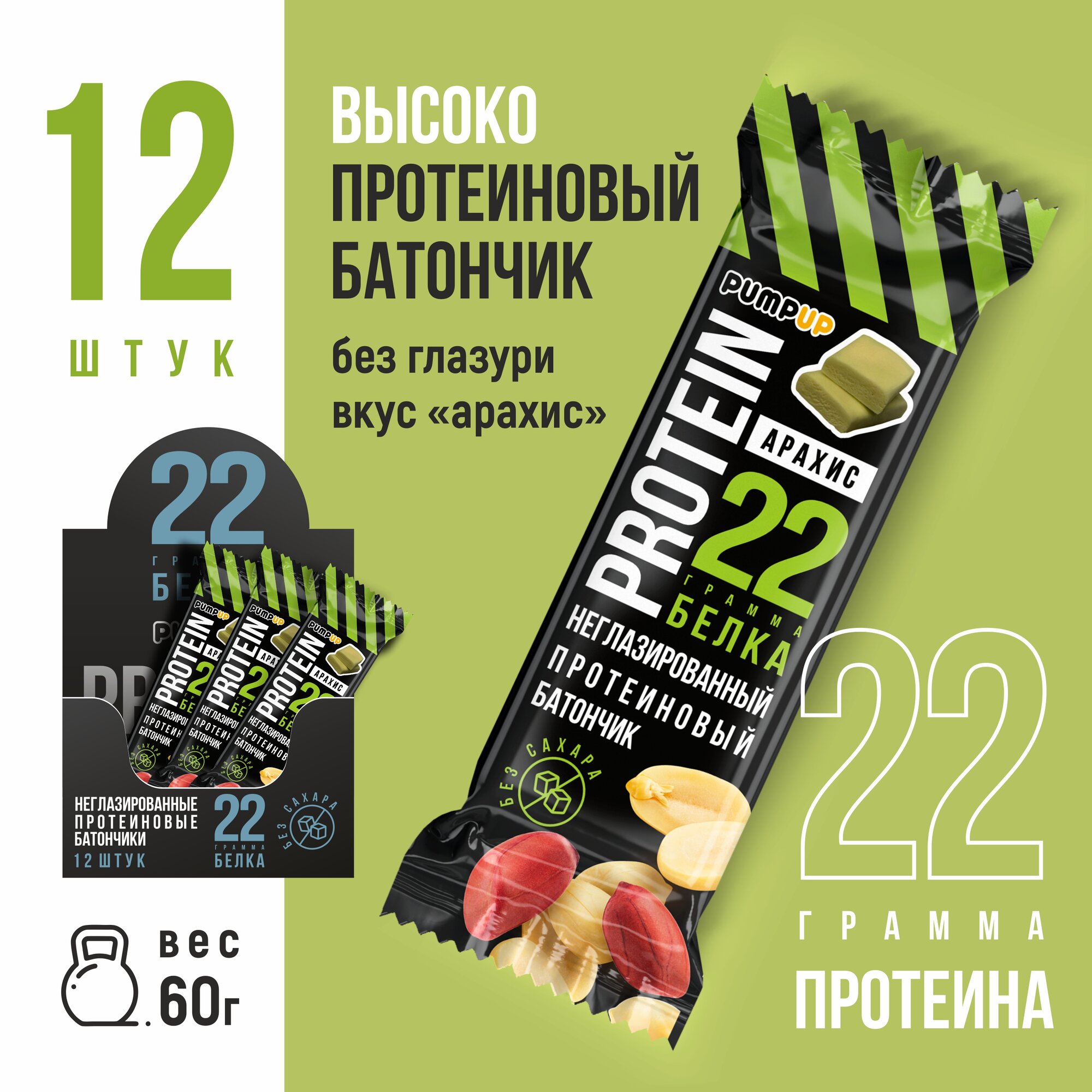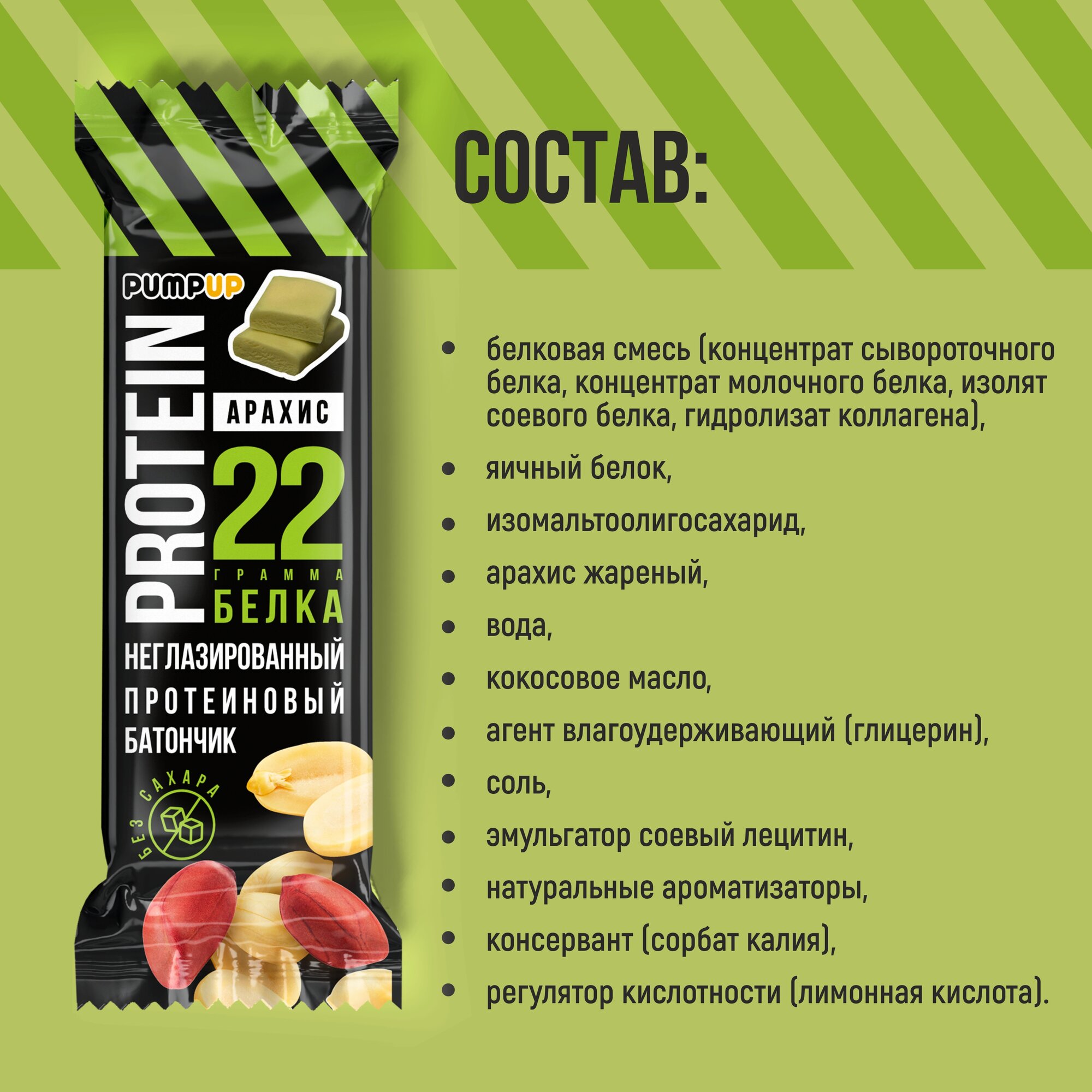 Купить Протеиновые батончики без сахара Pump Up с арахисом 12 шт. по 60 гр.