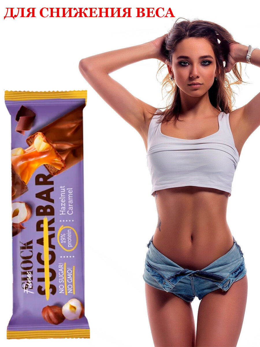 Батончик глазированный FitnesShock шоколад фундук карамель, 50г интересное:
