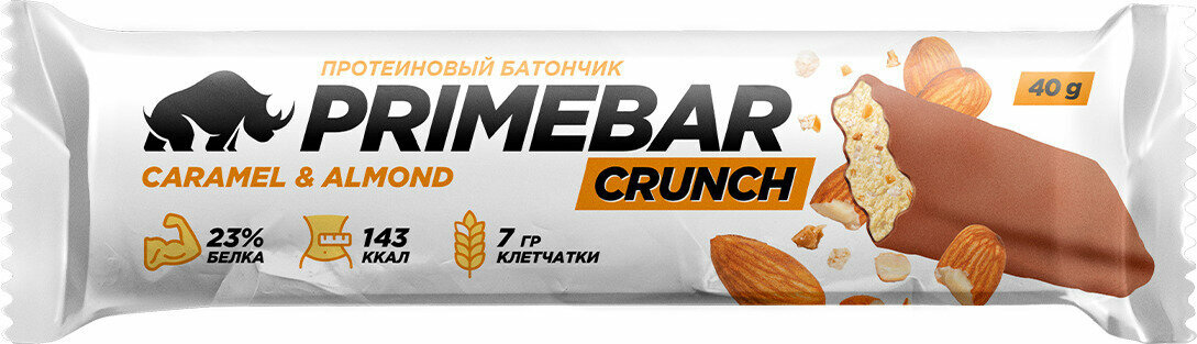 Протеиновые батончики без сахара PrimeKraft PrimeBar Crunch, 15 шт по 40 гр, миндальная карамель