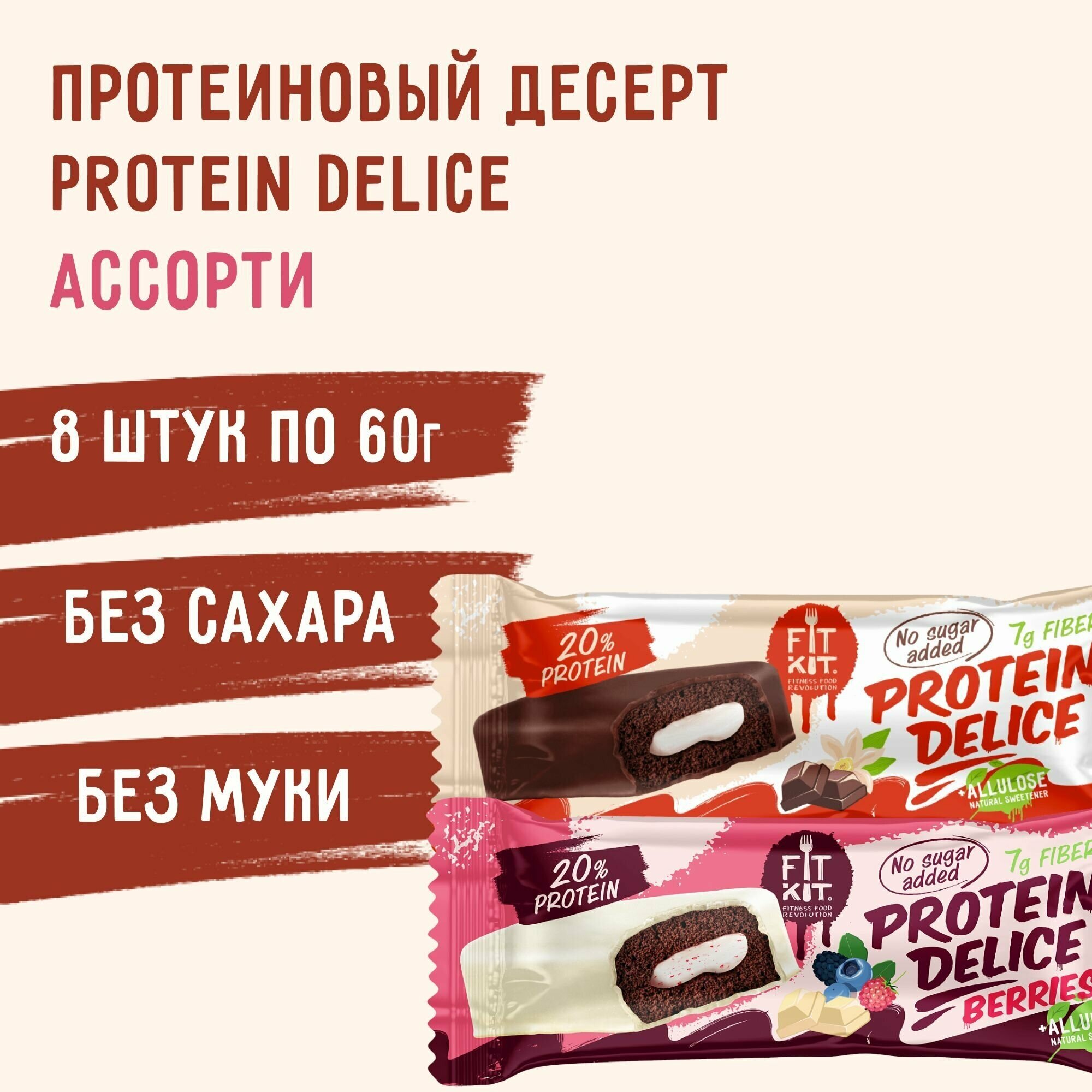 Протеиновые батончики fit kit без сахара Protein Delice Ассорти 8 шт, пп - десерты без сахара , полезные сладости ,протеин интересное: