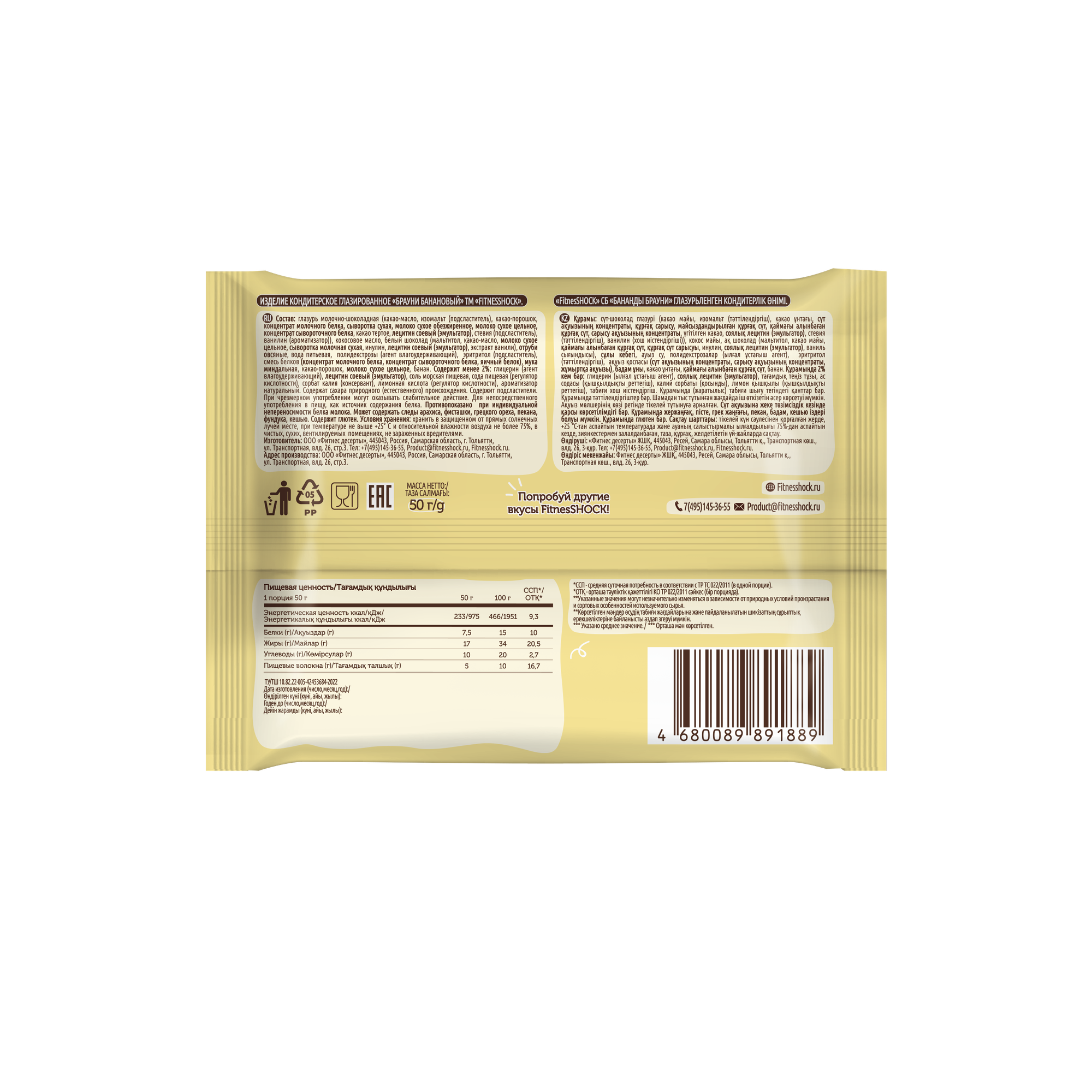 Протеиновое печенье без сахара Брауни банановый Fitness SHOCK, брауни без сахара, печенье без сахара, 50гр, 10 шт интересное: