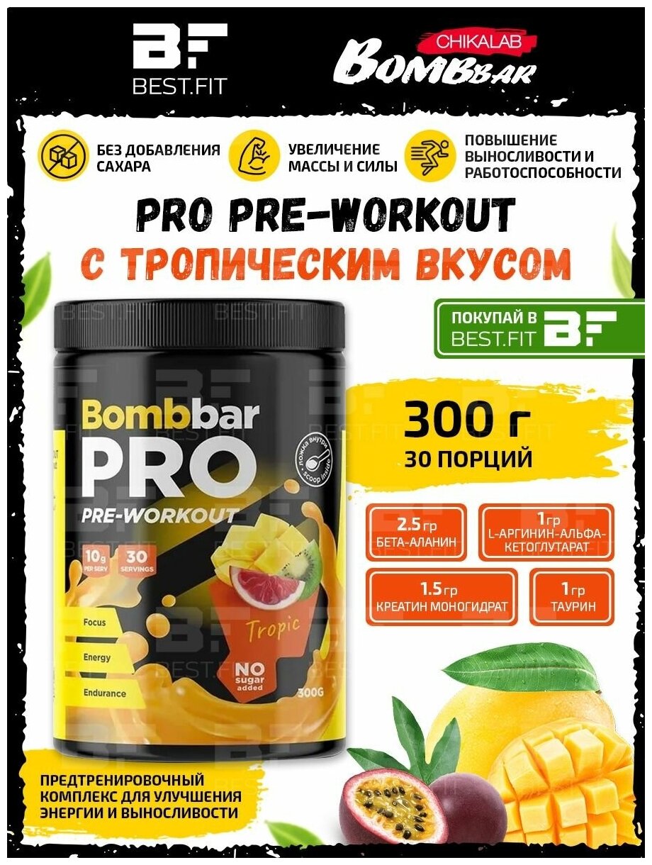 Предтренировочный комплекс Bombbar Pro, Тропический (300гр) интересное: