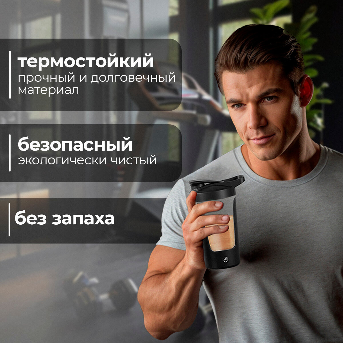 Электрический шейкер для спортивного питания и протеина, 450 мл, черный цвет