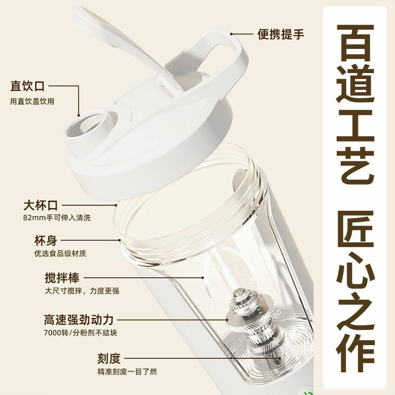 Шейкер электрический (белый) для спортивного питания, шейкер для протеина (объем 450мл) с миксером