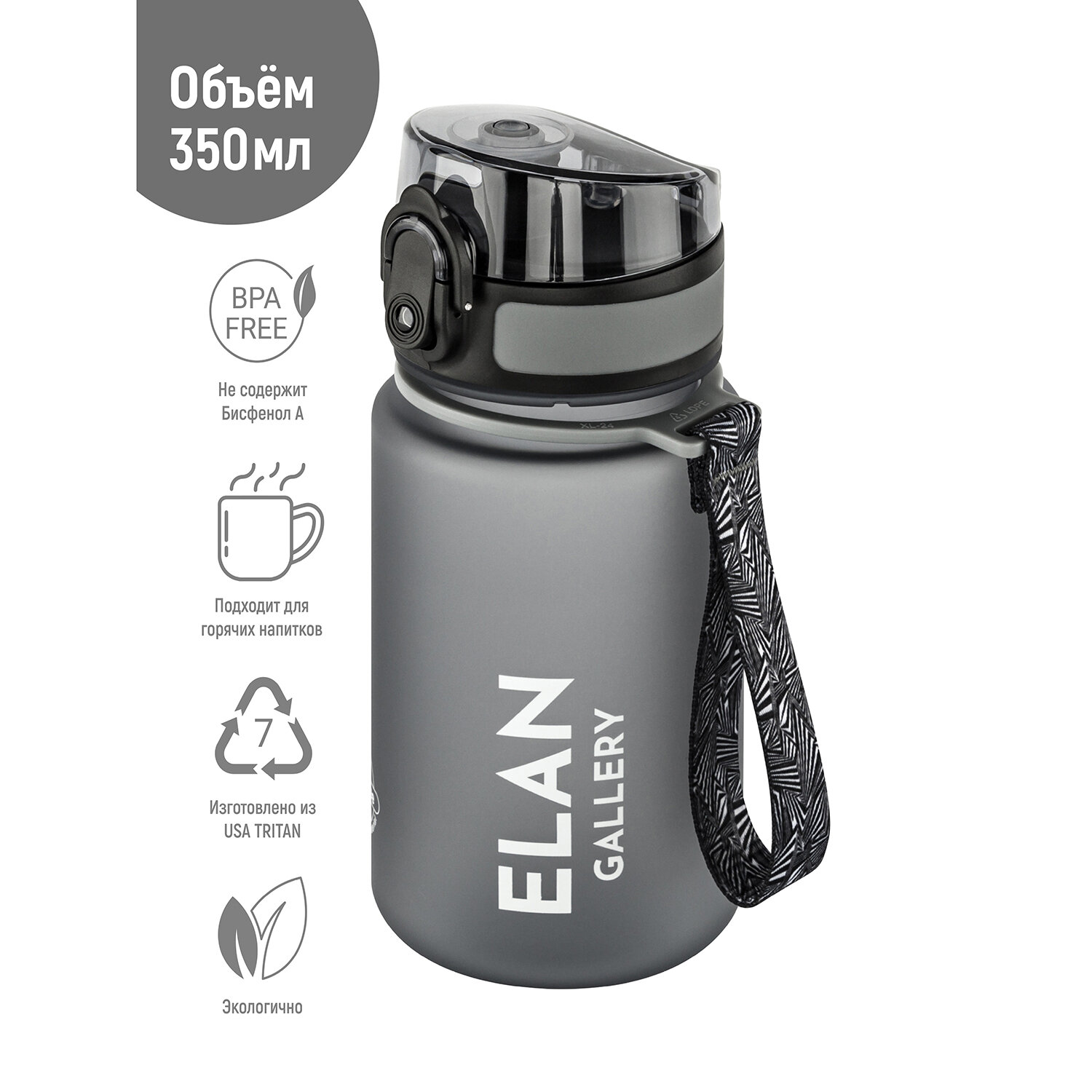 Бутылка для воды спортивная, для холодных и горячих напитков 350 мл 6,8х6,8х17 см Elan Gallery Style Matte, серая