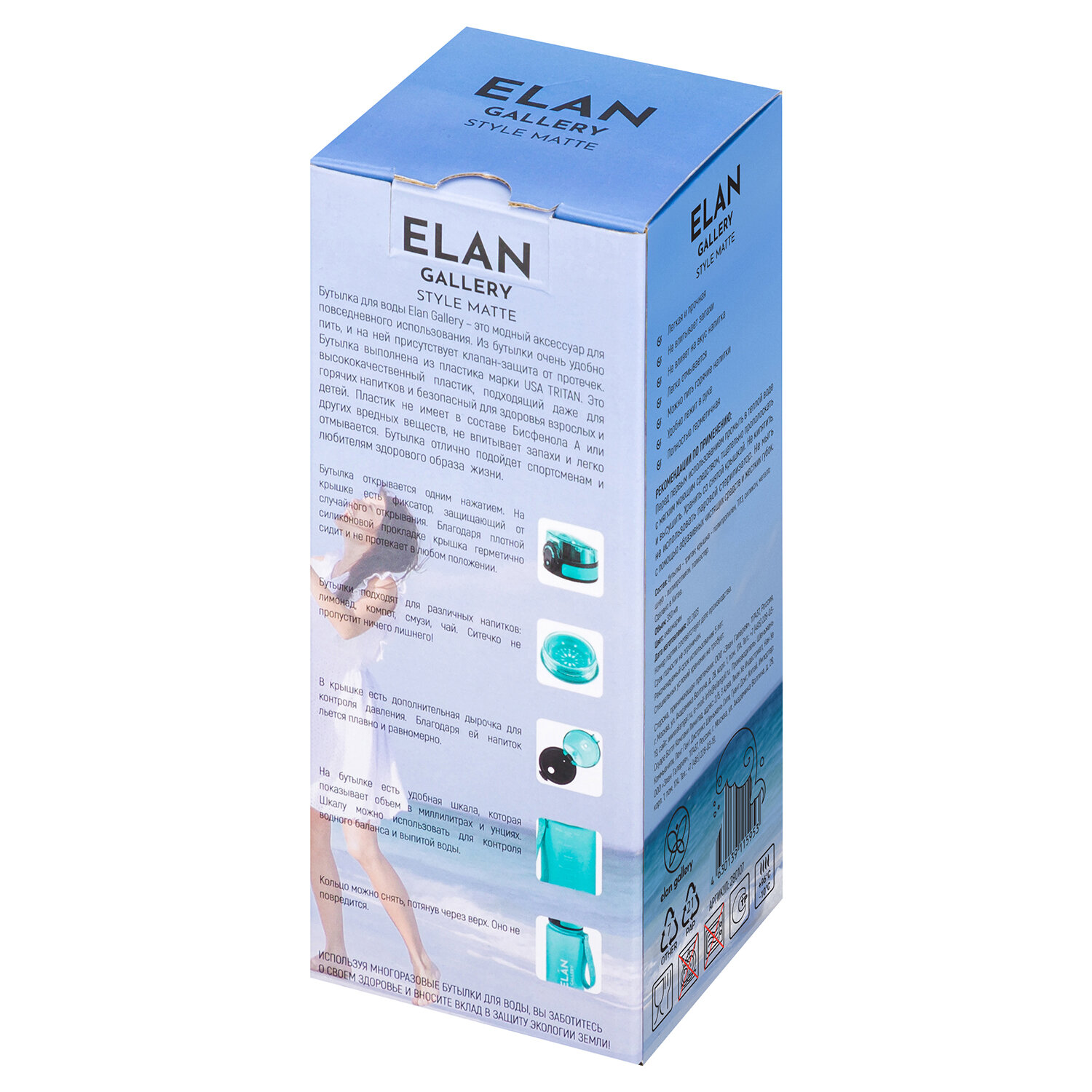 Купить Бутылка для воды 350 мл 6,8х6,8х17 см Elan Gallery Style Matte, аквамарин