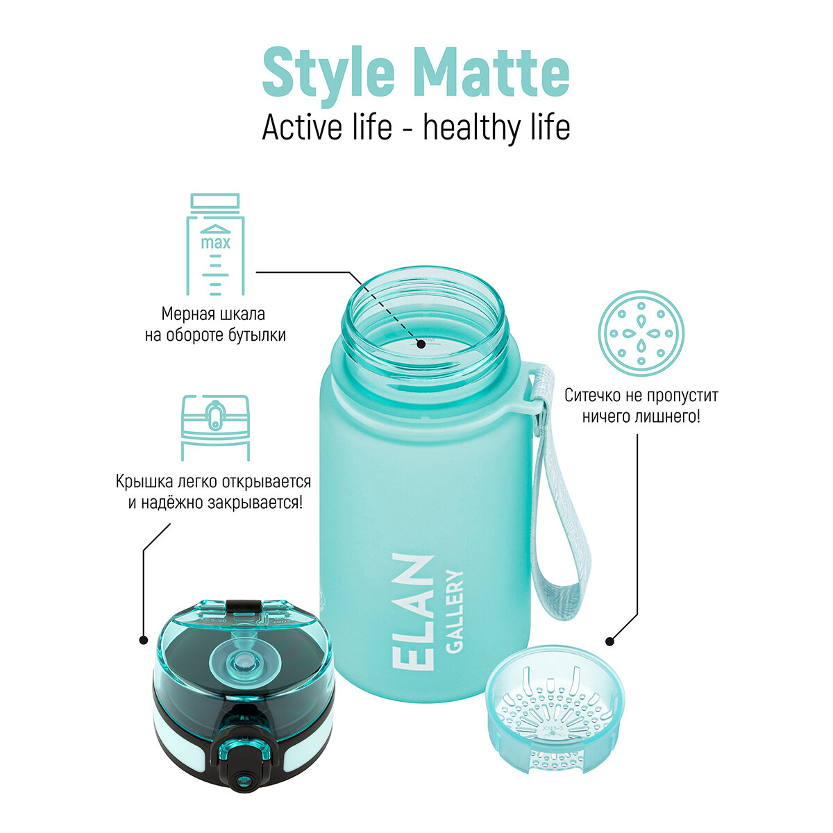 СохранитьБутылка для воды 350 мл 6,8х6,8х17 см Elan Gallery Style Matte, аквамарин интересное: