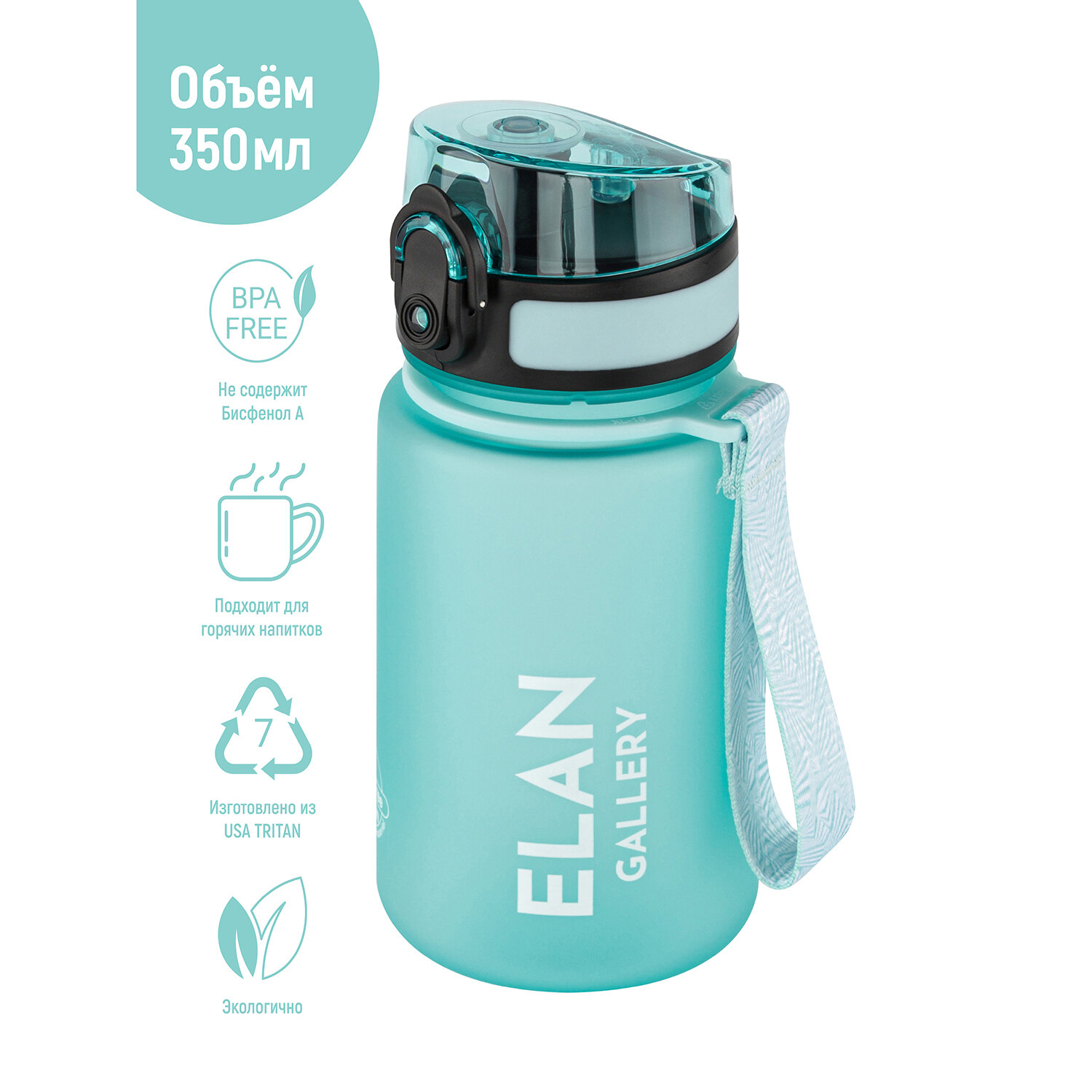 Бутылка для воды спортивная, для холодных и горячих напитков 350 мл 6,8х6,8х17 см Elan Gallery Style Matte, аквамарин