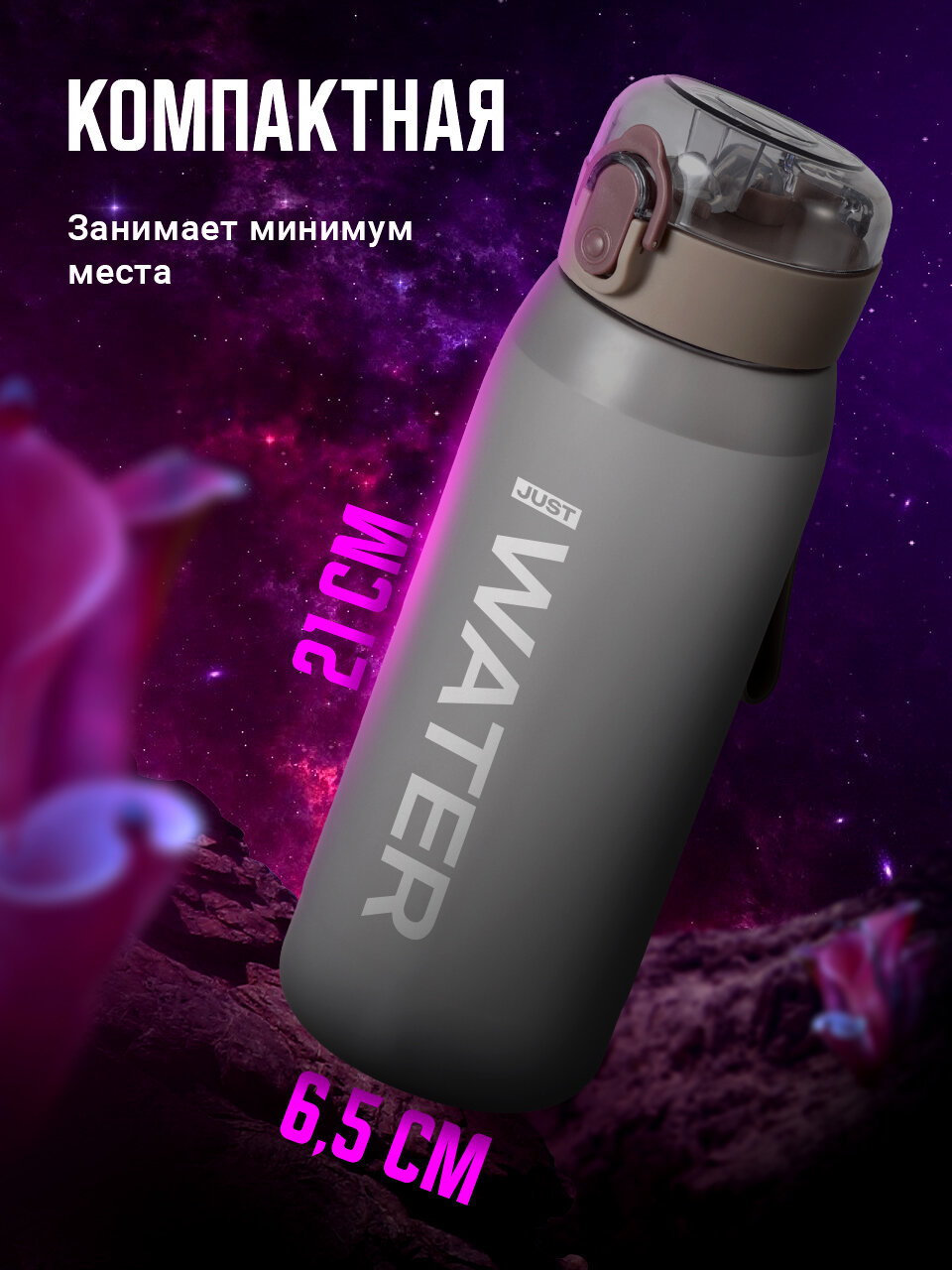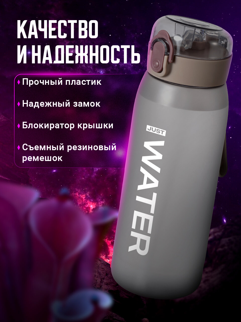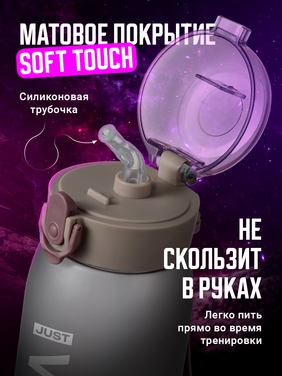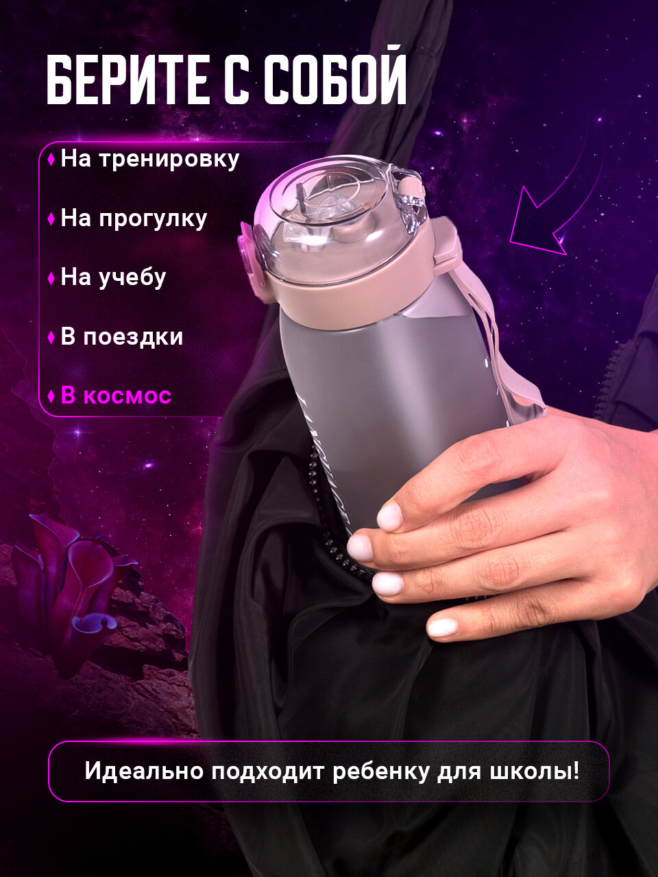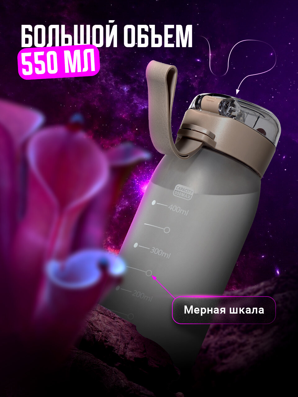 | Особенности | закрывается на замок, мерная шкала, петля для переноски, с трубочкой, силиконовая вставка на корпусе |
