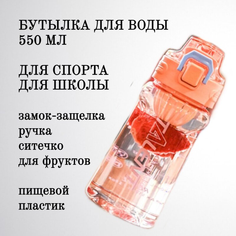 Бутылка для воды спортивная + съемный фильтр 550 мл., персиковая розовая, бутылка для велопрогулок, бутылка в рюкзак интересное:
