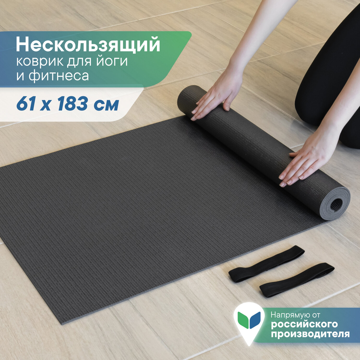 Коврик для йоги 173 х 61 х 0,5 см, цвет чёрный (1 шт.)