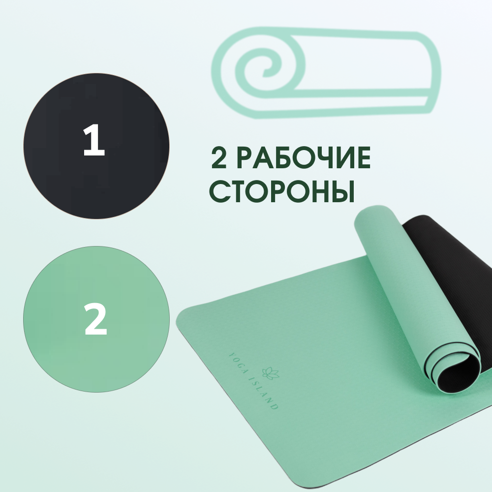 Купить Коврик для йоги и фитнеса Yoga Island, нескользящий, ТПЕ, 0.6 см, 183×61 см, светло-зеленый