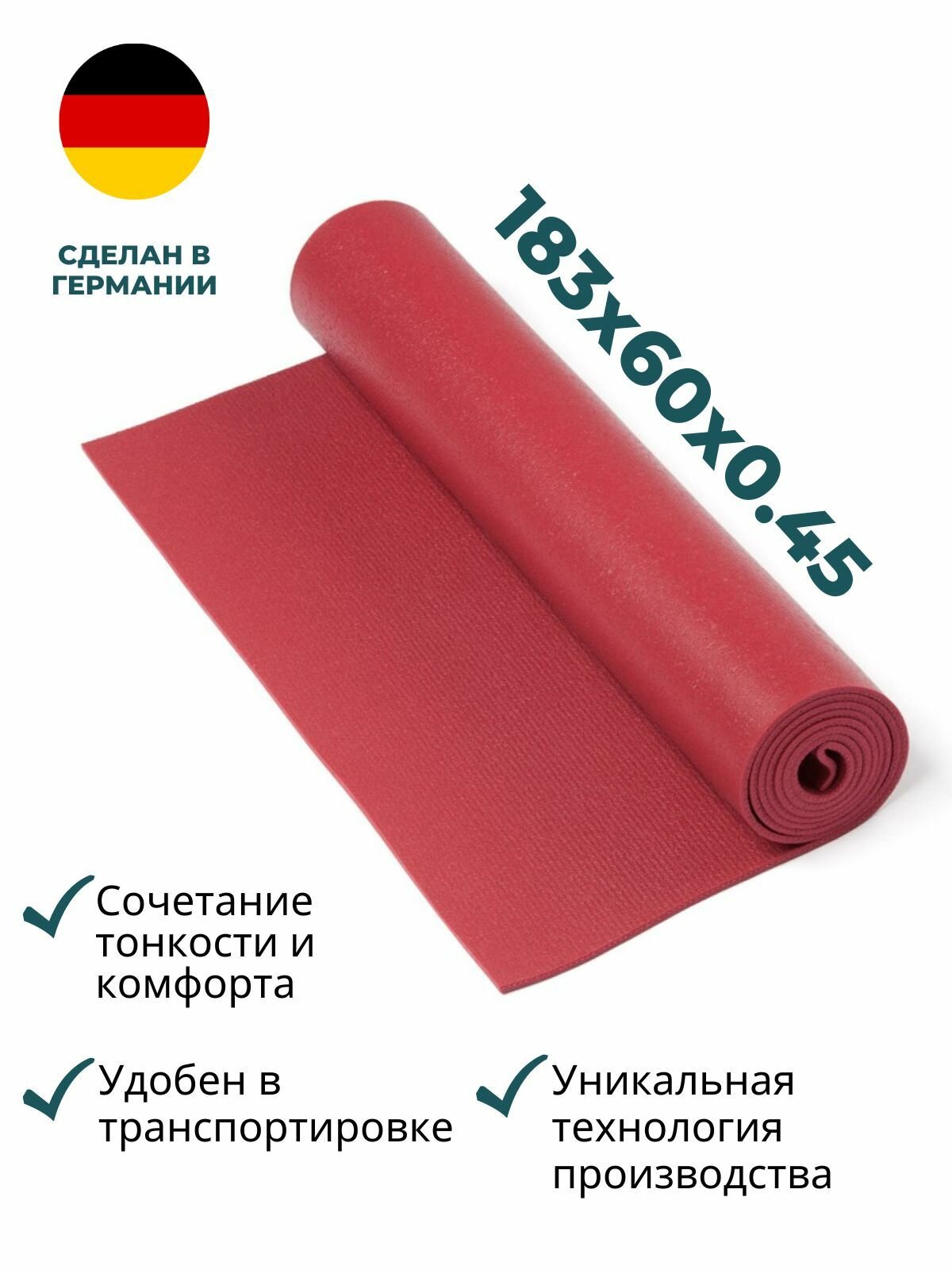 Купить Коврик для йоги Yogastuff Ришикеш бордовый 183*60 см, прочный, нескользящий