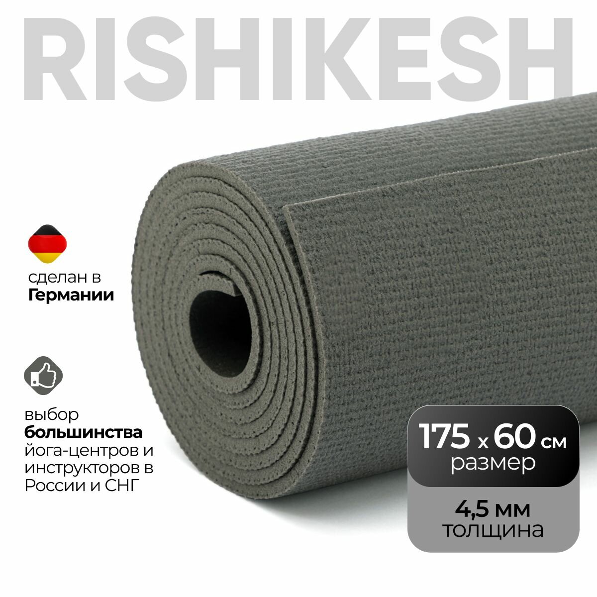 СохранитьКоврик для йоги Yogastuff Ришикеш серый 175*60 см, прочный, нескользящий интересное:
