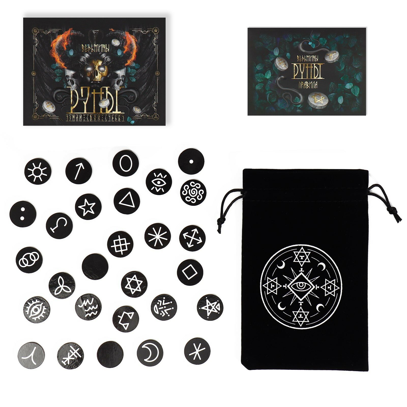 Набор "Ведьмины руны" для гадания и бархатный мешочек, 28 шт интересное: