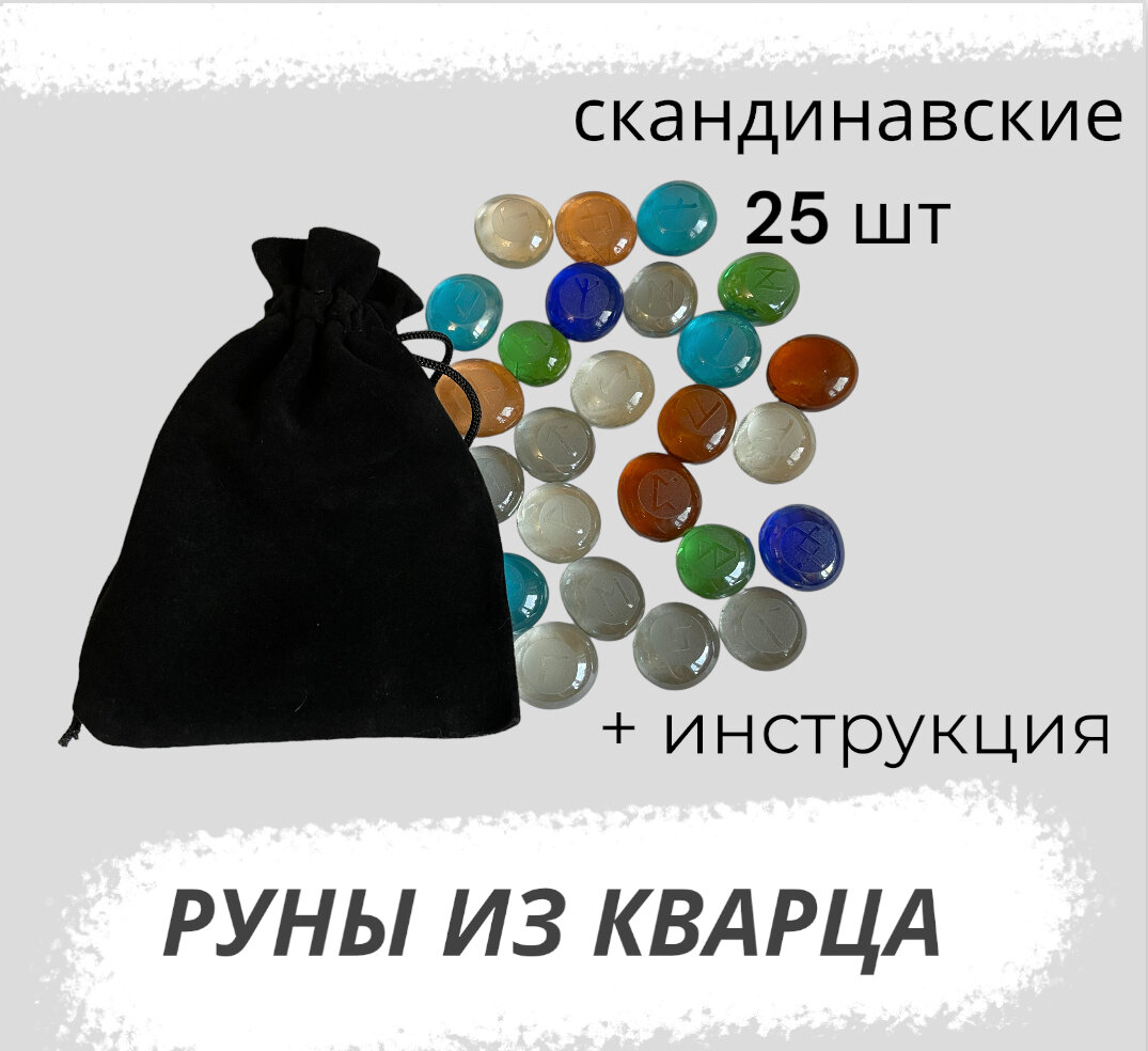 Руны скандинавские из кварца, 25 штук с мешочком и инструкцией, Артсимвол интересное: