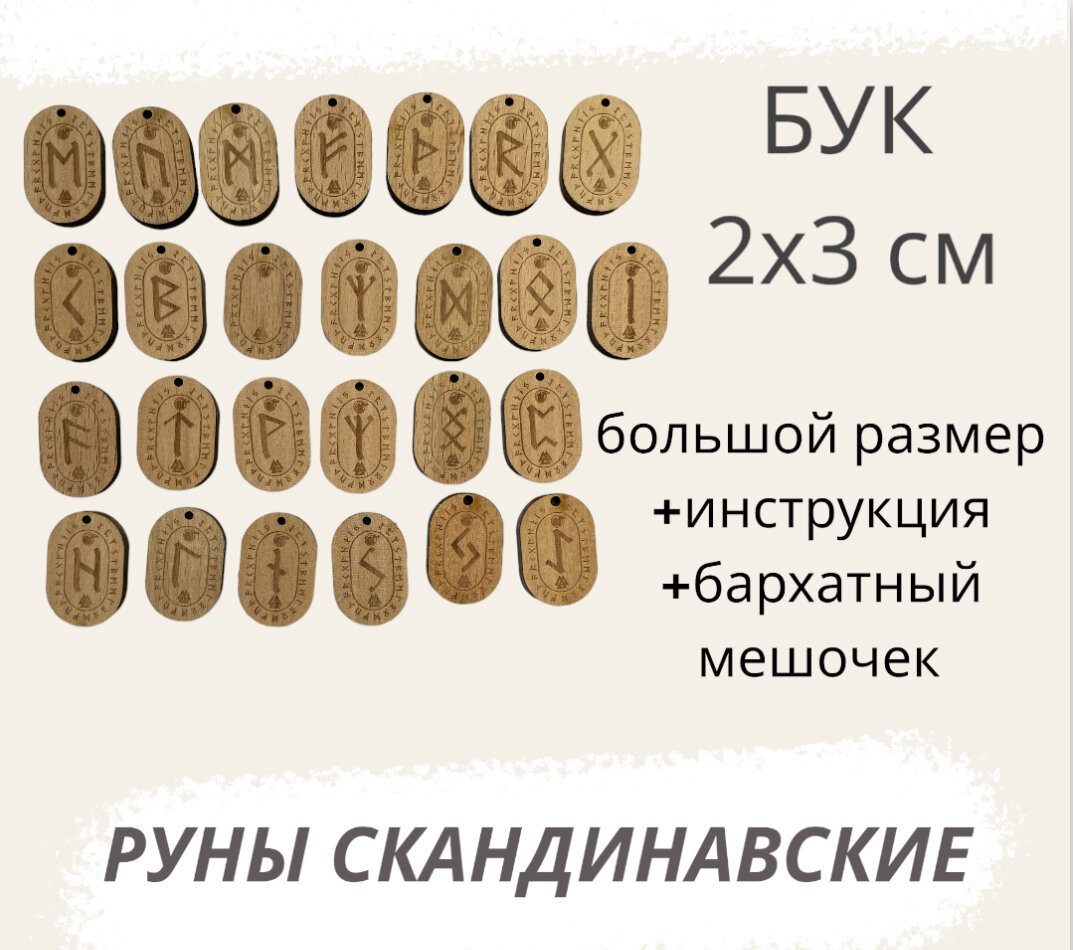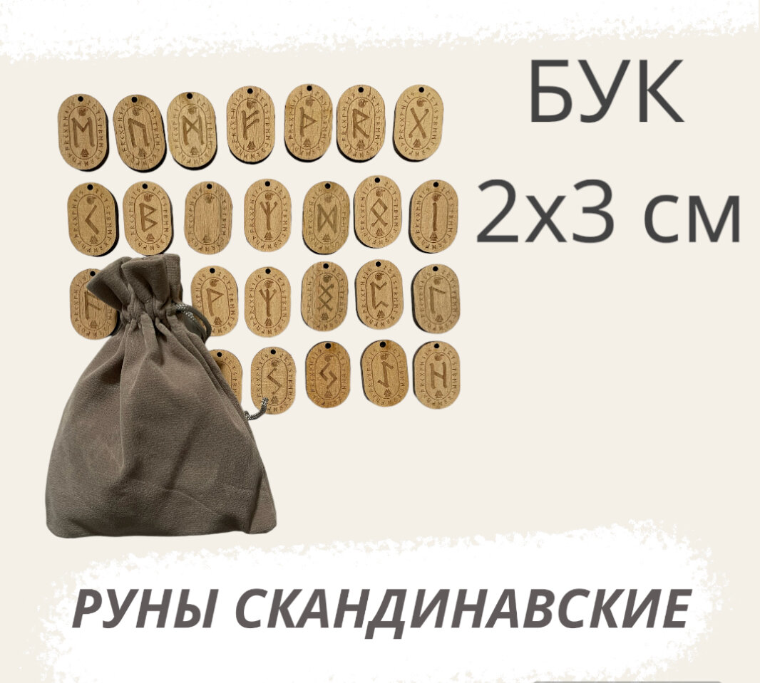 Скандинавские руны 2х3 см из бука с инструкцией и мешочком интересное: