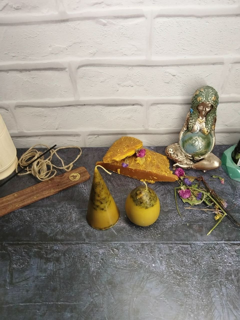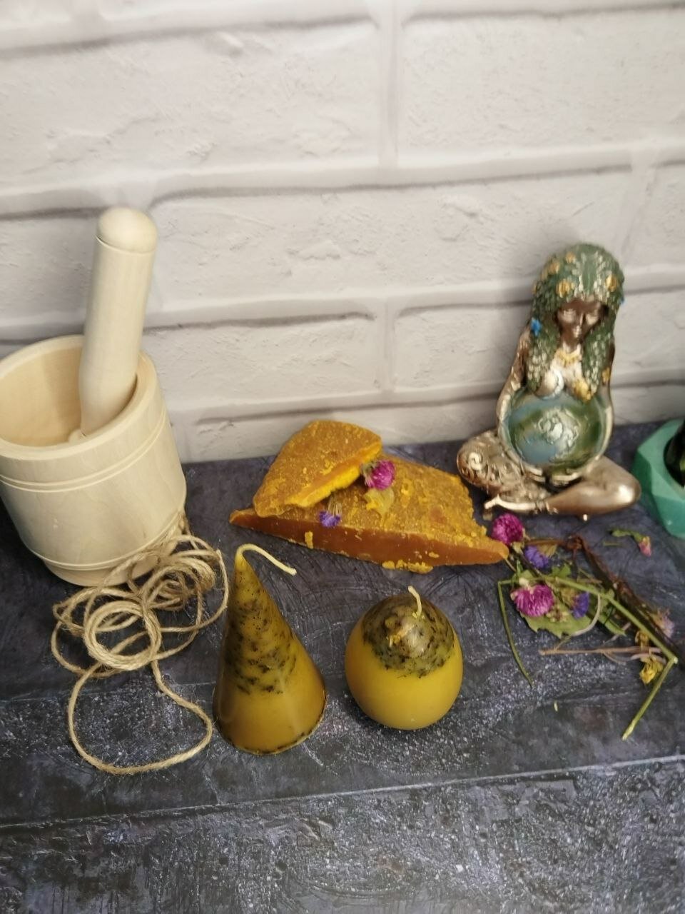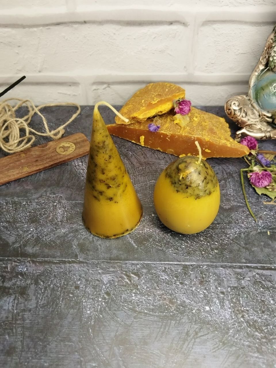 Набор программных свечей "Исполнение желания" пчелиный воск с травами (яйцо "чистка" + ведьмина свеча "создание намерения") интересное: