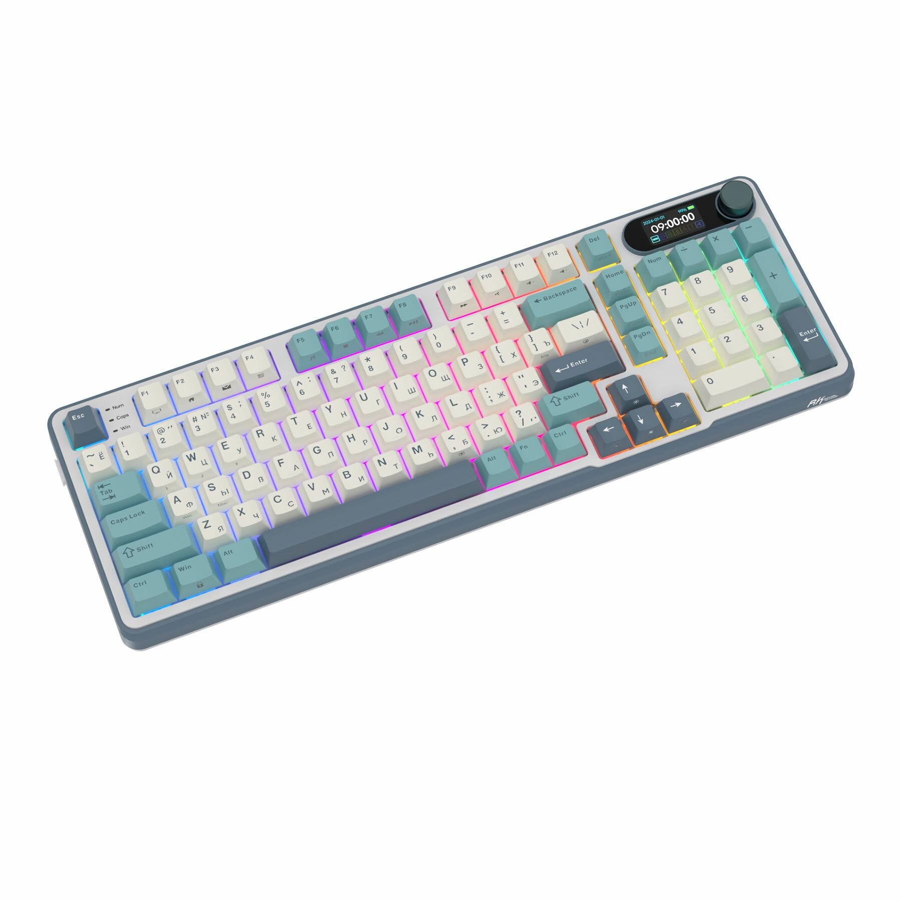 Беспроводная механическая клавиатура Royal Kludge RK-S98 (96%) цвет Ocean Blue, RGB, Hot Swap, кейкапы без подсветки символов, линейные свитчи (RK Cream)