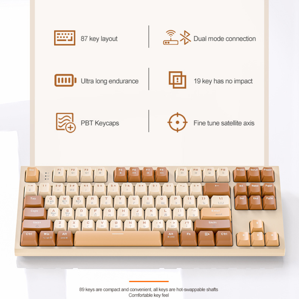 Клавиатура механическая беспроводная русская Free Wolf M88 Bluetooth+2.4G+Hot-Swap игровая для компьютера ноутбука планшета интересное: