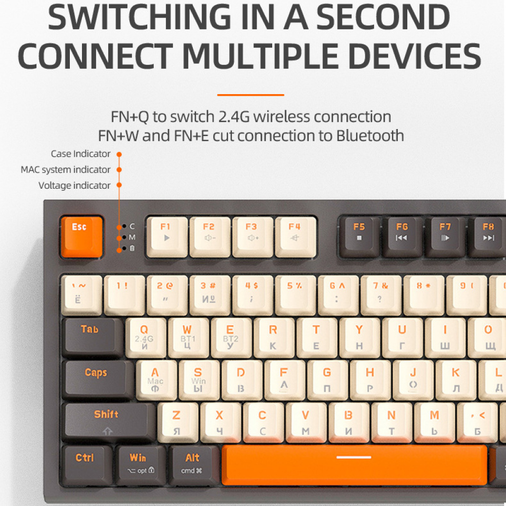 Клавиатура механическая беспроводная русская Free Wolf M88 Bluetooth+2.4G+Hot Swap игровая для компьютера ноутбука планшета интересное: